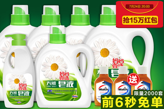 首页>促销活动>10免单:0元包邮 威露士妈妈壹选天然洗衣皂液2kgx4+皂液828gx1+皂液1kgx1