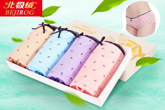极绒女士蕾丝中腰性感棉质三角内裤4条