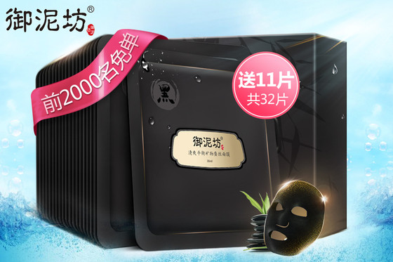 10点免单:0元包邮 御泥坊清爽平衡矿物蚕丝面膜黑面膜21片