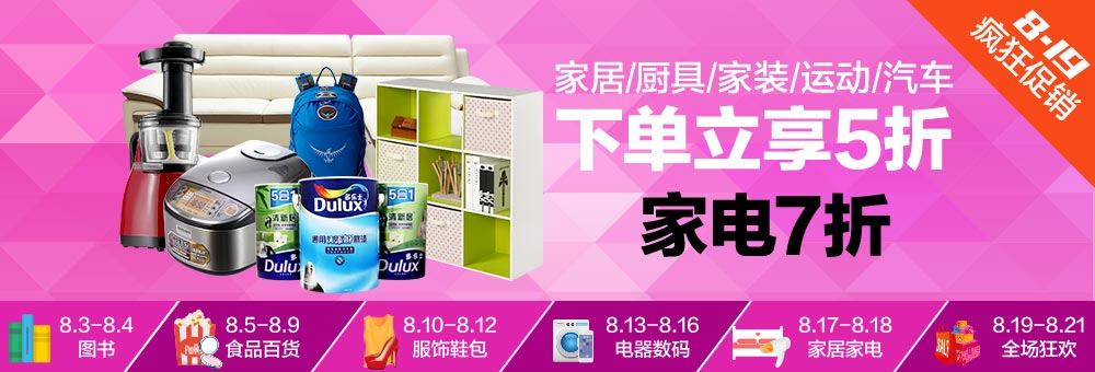 自营厨具专场下单5折,优惠码“I49E7QQGLW”。自营家居专场下单5折,优惠码“XIADAN5ZHE”。自营游泳配件专场下单5折,优惠码“SPORT50OFF”。自营家装专场下单5折,在专场领取优惠券即可。自营家电专场下单7折,优惠码“7888SHA888”。