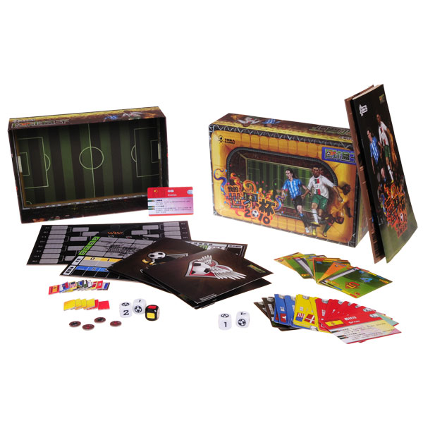 2010年,“足球盒子”将带你来到南非,置身宏伟的赛场,踏上“我的世界杯”的梦幻旅程,领略足球的狂野与激 情。你将率领你热爱的球队,在万 众瞩目的绿茵场上,捧起世界足坛至高无上的大力神杯!《我的世界杯》是一款为2010南非世界杯度身订制的桌游。作为主教练,你将用精湛的指挥艺术,为32支各具特色的 球队带来无限可能。只有揣测对手的心理,合理运用进攻、防守、进球和犯规,出其不意,将对手的战术一一破解,抓住转瞬即逝的机遇,才能赢得比赛的胜利。