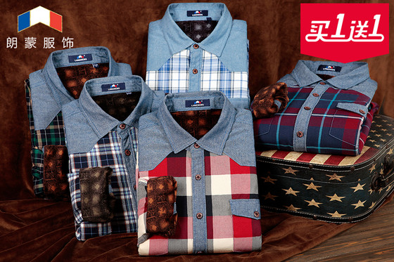 朗蒙欧美范拼接牛仔加绒保暖衬衫,购买链接,前100名免单,前5分钟半价。