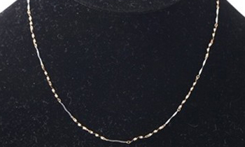 潮宏基也算国内知名品牌,各地都有专卖店。此款项链为18K彩金项链。重量约为1.30克左右,项链长约42厘米。