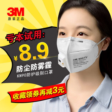 2.9元包邮 3M 9001V/9002V防护口罩 3只