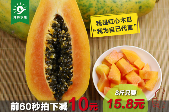 前1分钟:15.8元包邮 海南红心木瓜8斤