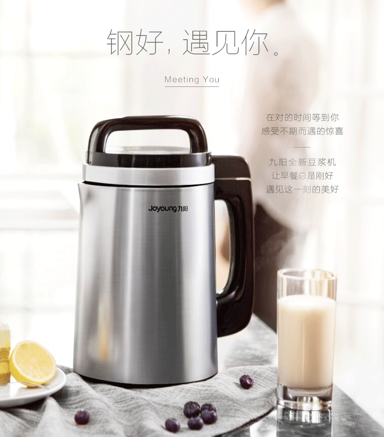 Joyoung/九阳 DJ13E-C8豆浆机 ,定位高端,采用破壁免滤3.0技术,15000转/分的高速破壁电机配合12孔鱼骨型劲磨器与三叶平刀片,提供更为香醇细腻的口感。还支持热饮与冷饮选择,3~11小时预约,干豆可直接用,无需泡发更加便捷。采用304不锈钢内胆,拉丝全钢外壳,长久使用不易显旧。除了豆浆还支持米糊、豆花、果汁、米粥等多种菜单。