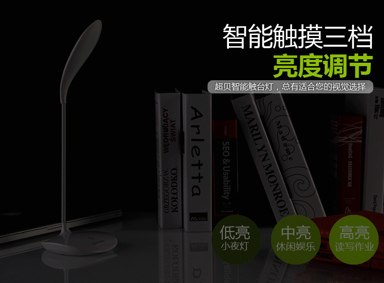 超贝LED台灯护眼学习灯,20颗优质节能灯片,触摸三挡开关,360度灯头旋转,照明无死角,usb充电,非常方便,柔光扩光片,贴近自然光,保护你的双眼,6年质保,终身维修,送USB充电线!