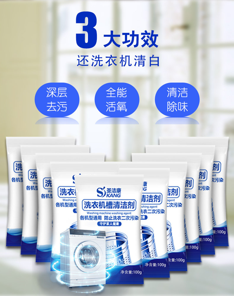 【天猫圣洁康】24万好评,大品牌圣洁康,12袋整整1200克重,可以用一年!适合各种洗衣机,活性氧高效去污+清洁+除霉,温和无残留,防止二次污染,养护不伤衣,家家能用上,无磷环保,健康生活每一天!