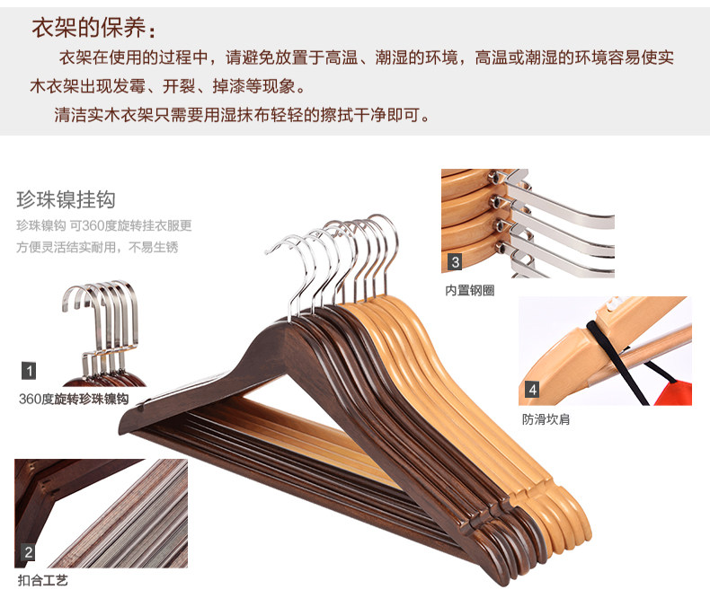 优惠10支装!!优选上好实木,光滑细腻,UV耐磨,不褪色,无异味,U形坎肩防滑,珍珠挂钩,可360旋转挂衣服更方便灵活结实耐用,不易生锈。【多颜色可选,多形可选,赠送运费险,赶紧抢购哈】
