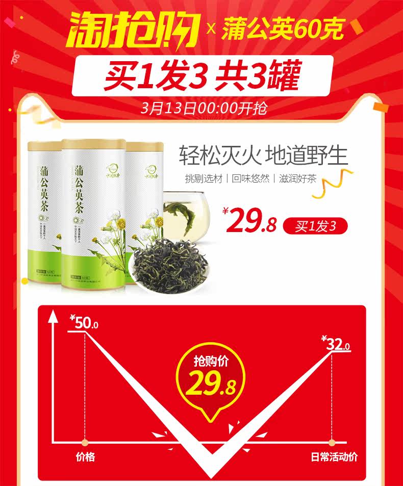 【中闽飘香】长白山蒲公英茶60g*3罐装