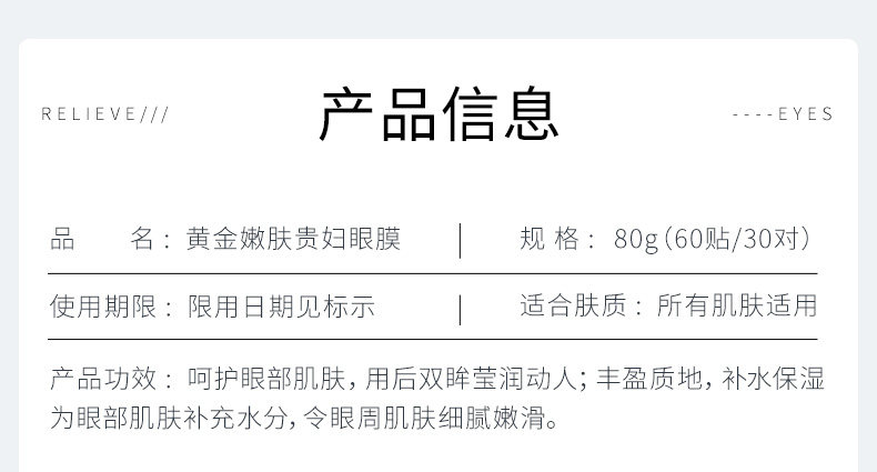 第二件0元!一定要拍两件!两件才38!经常加班,熬夜追剧,黑眼圈、小细纹都出来了,瞬间老了10岁,韩瑟黄金眼膜贴起来!越敷越水,轻按眼周一下就吸收了!轻松赶走黑眼圈~