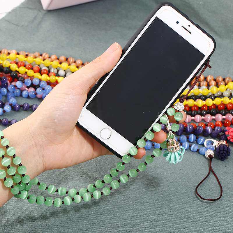 【赠送手机指环支架】男女多款可选,精致手工流行猫眼石,细致精美,手机绳长约42cm,加粗穿珠线,结实不易断,让手机看起来美美哒【购物无忧,赠运费险】