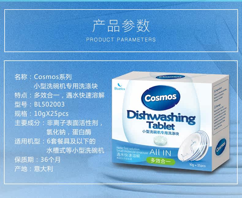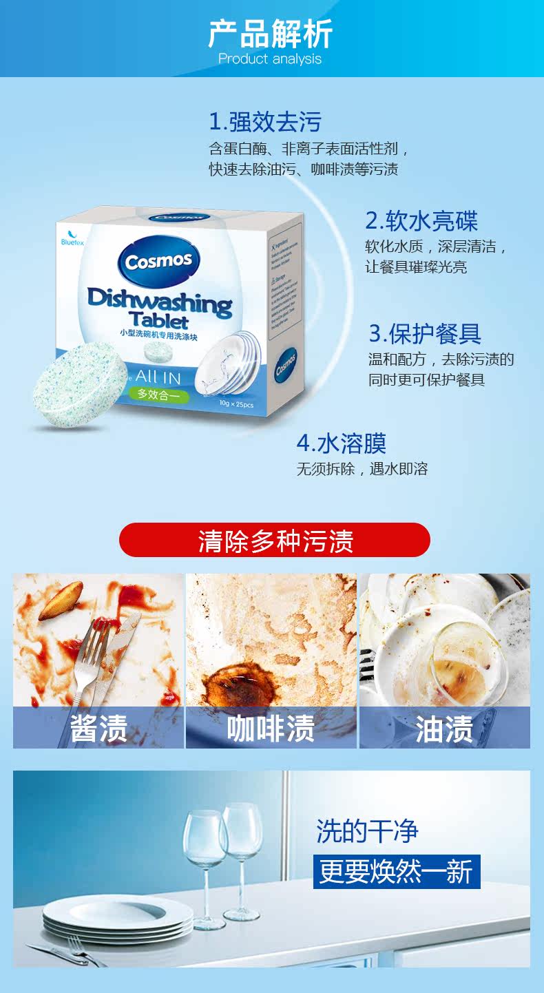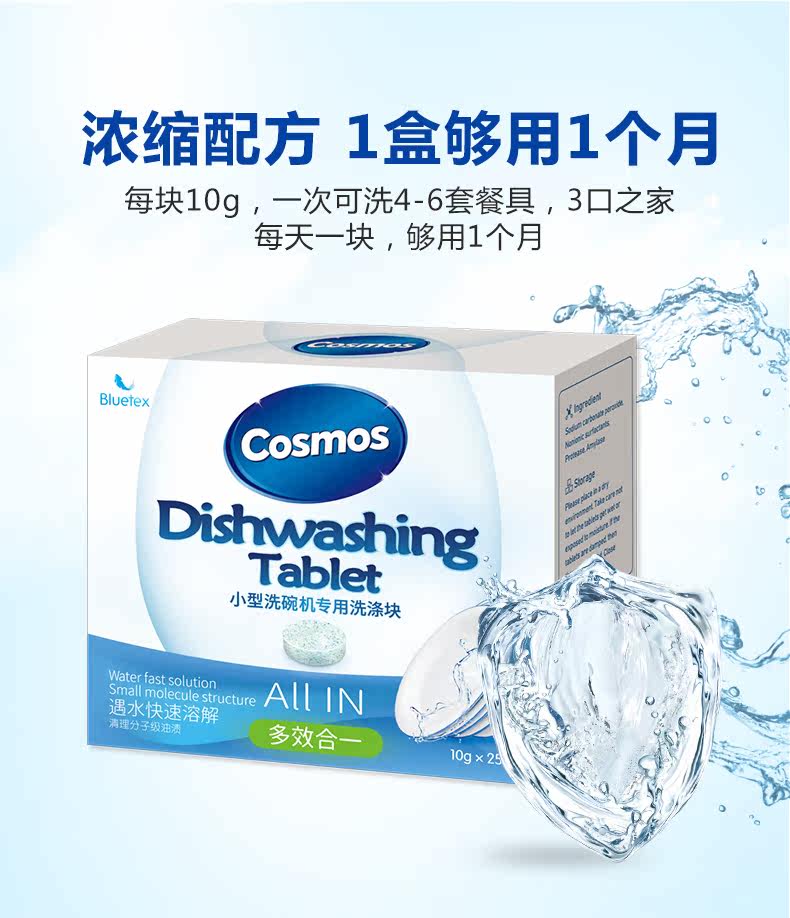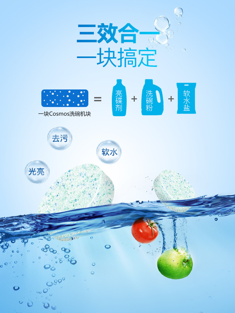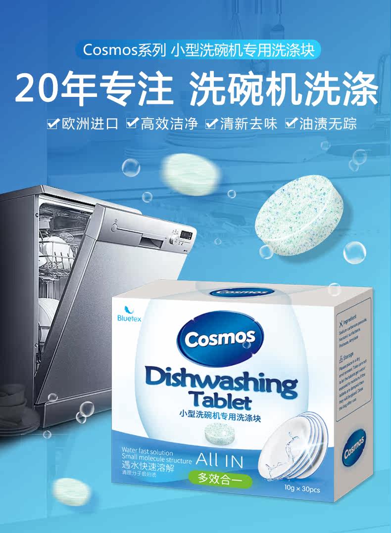 Cosmos洗碗机专用清洁洗碗块,适用多种机型,欧盟安全认证,意大利进口20年专注洗碗机洗涤,全新配方,有效洗涤,易溶解,不易残留,亮碟如新,安全放心!!
