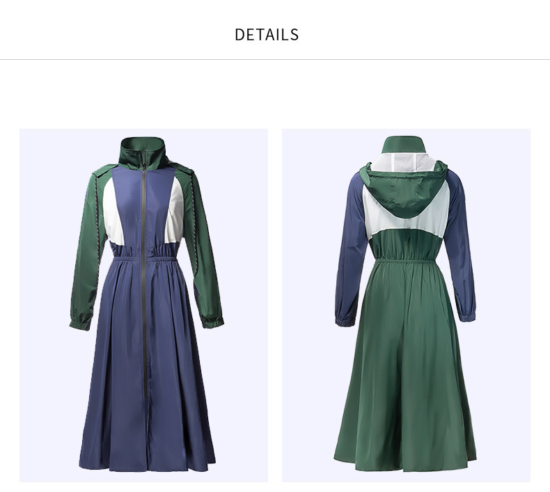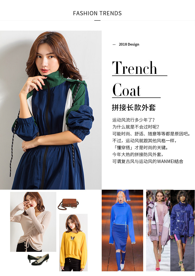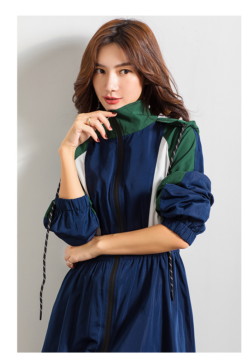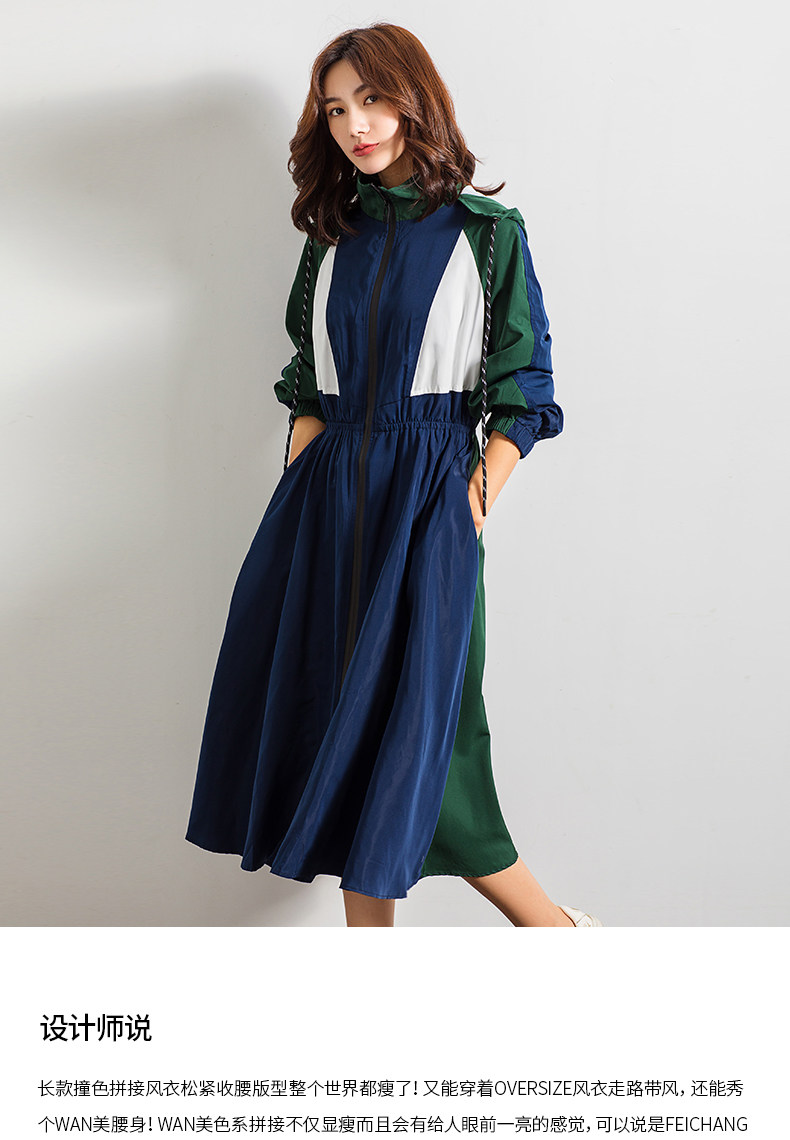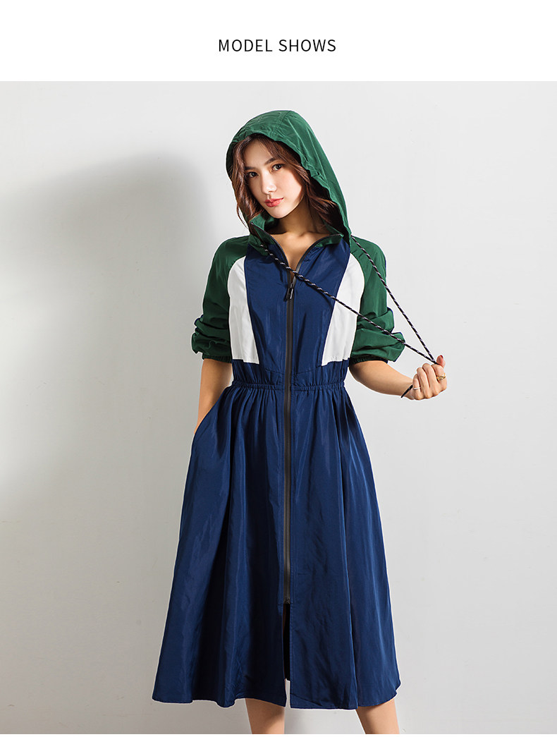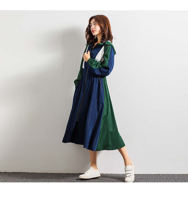 轻薄款长袖宽松百搭休闲拼接连帽风衣,长款撞色拼接风衣紧收腰版型,整个世界都瘦了!又能穿着OVERSIZE风衣走路带风,还能秀个WAN美腰身。