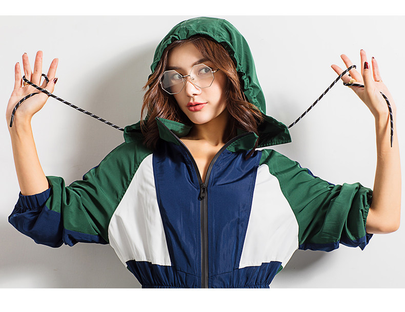 轻薄款长袖宽松百搭休闲拼接连帽风衣