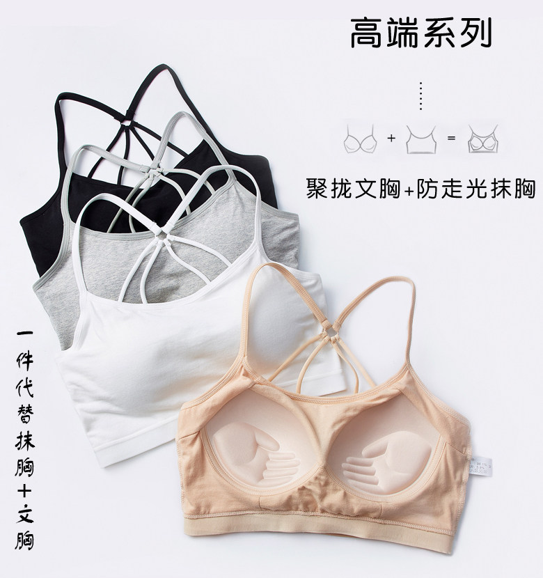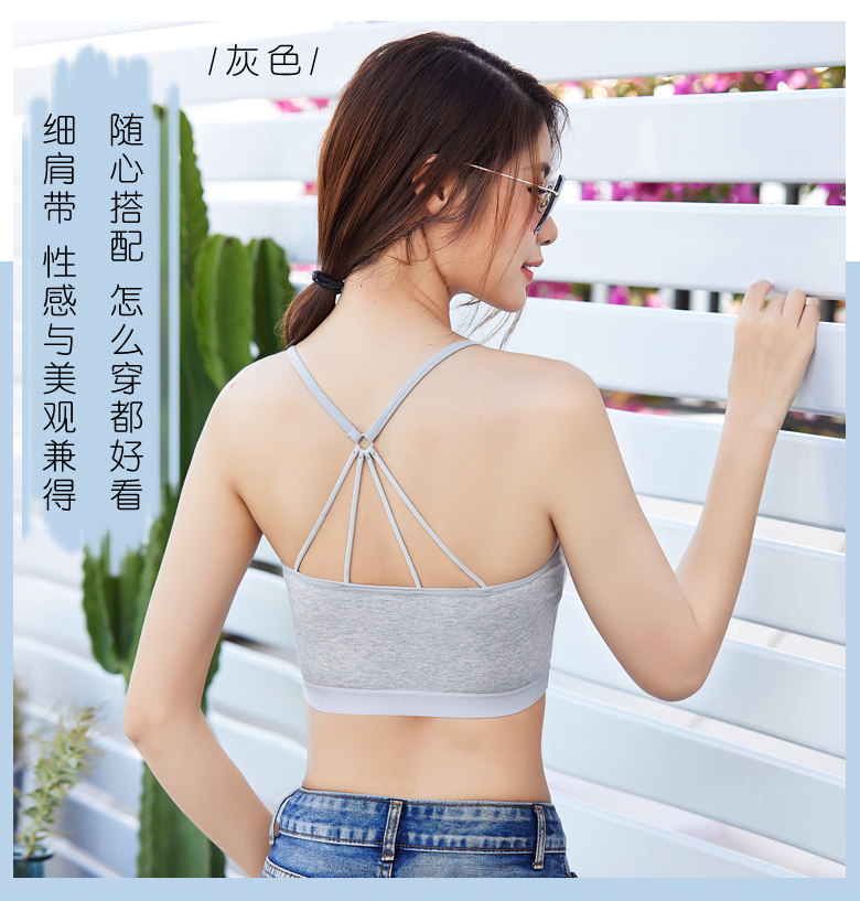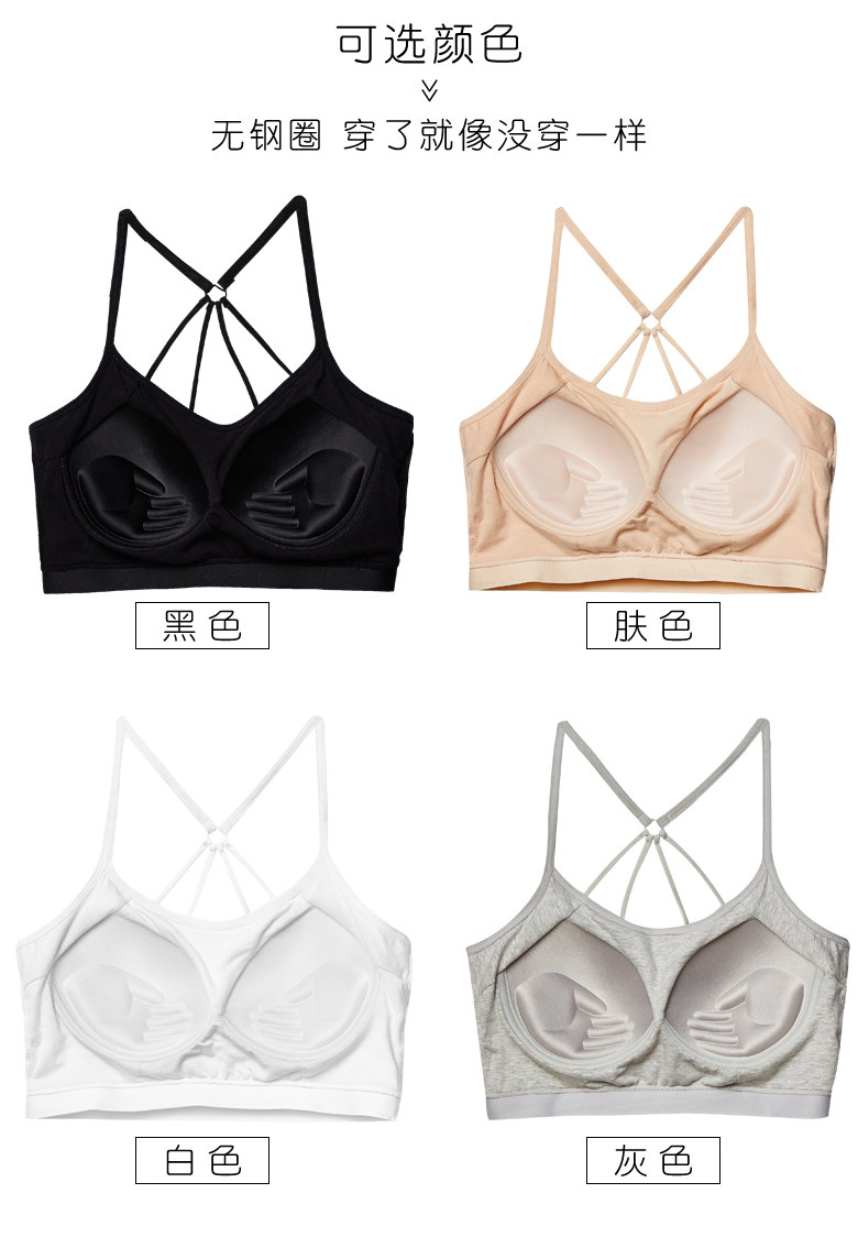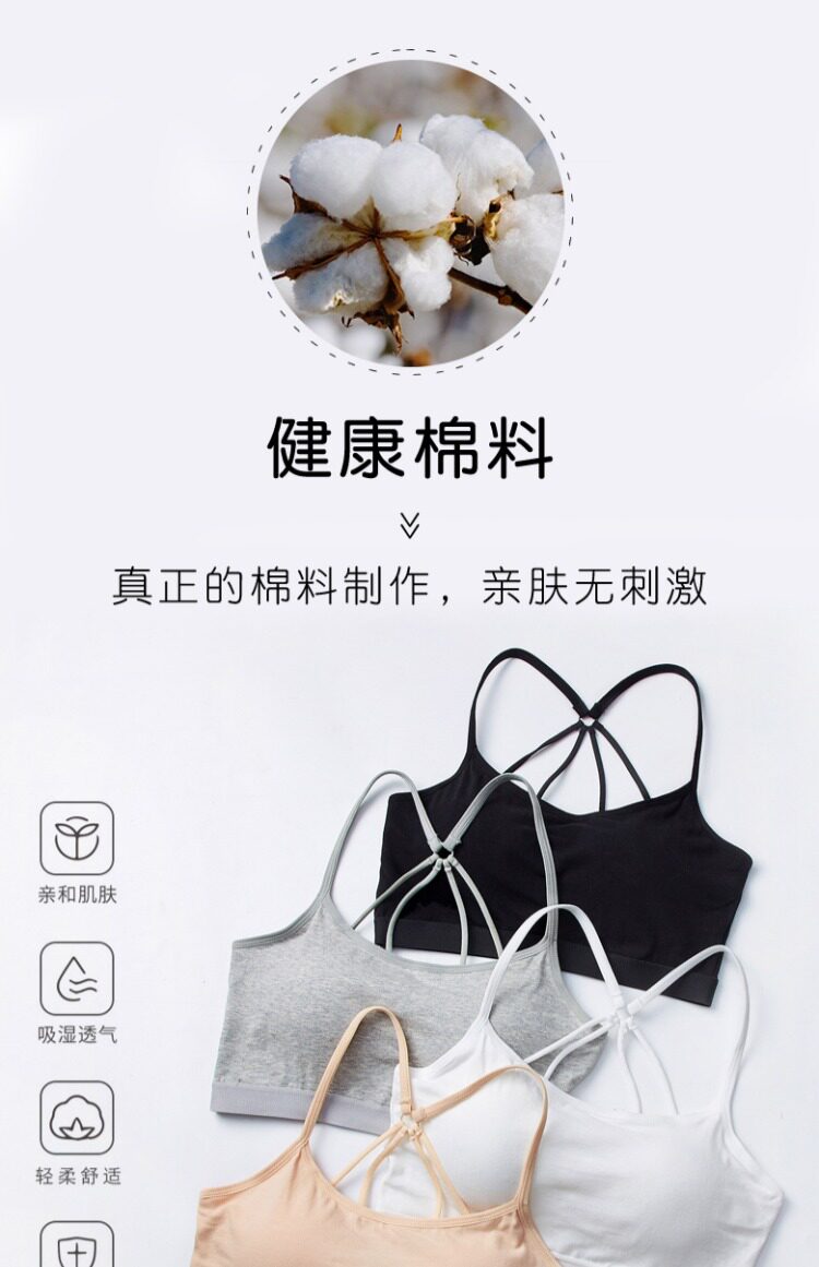 无钢圈运动文胸,性感背心吊带,降落伞美背,一体式无钢圈罩杯,柔软亲肤胸部零束缚,纯棉品质,吸湿排汗,最美少女风范。【赠运费险】