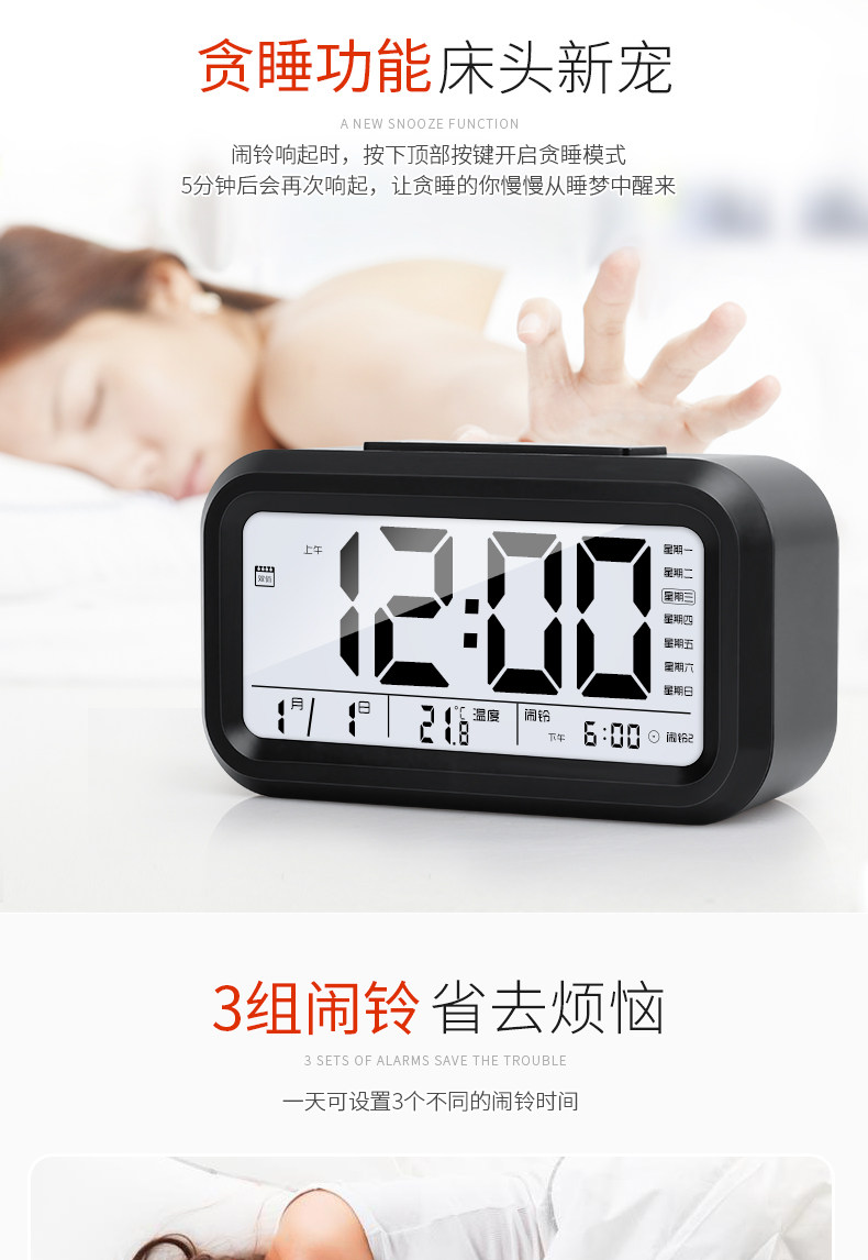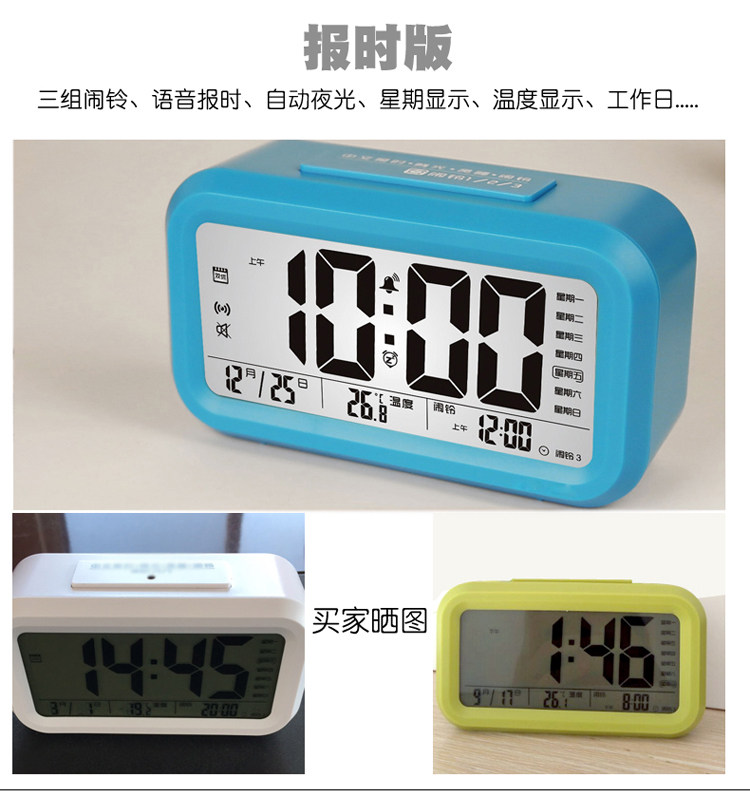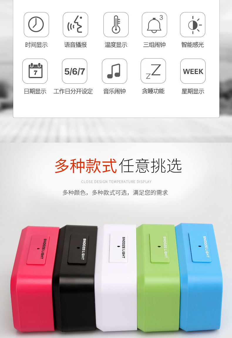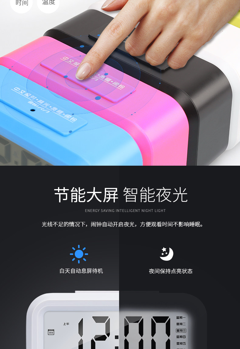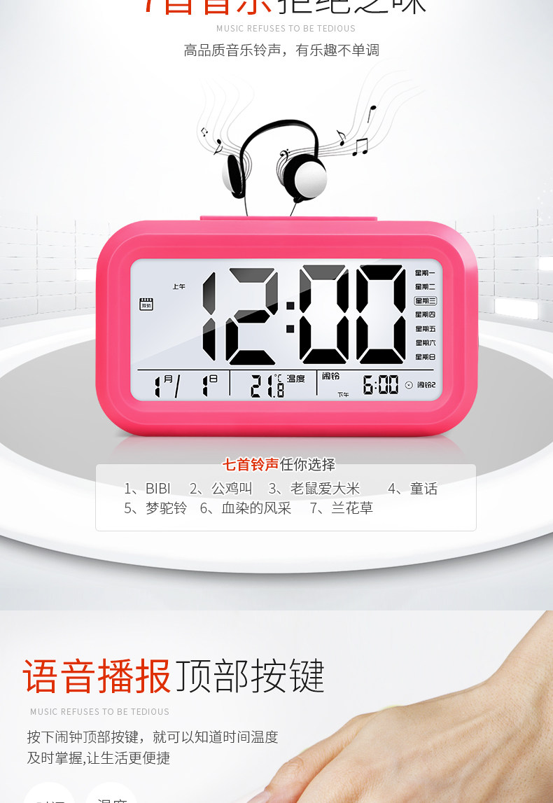 节能大屏,多组闹铃,音乐闹钟,语音播报,带温度显示,智能感光!!!多款多色可选!【赠运费险】