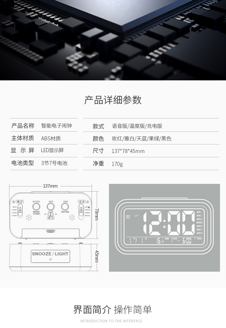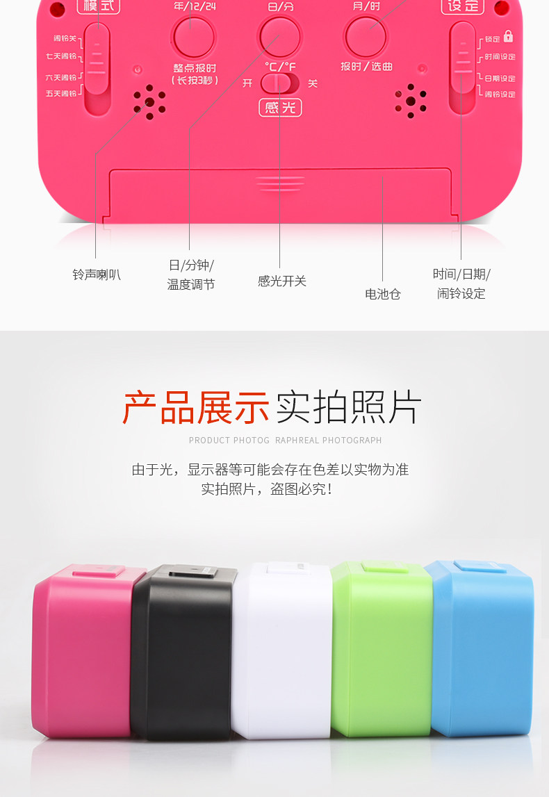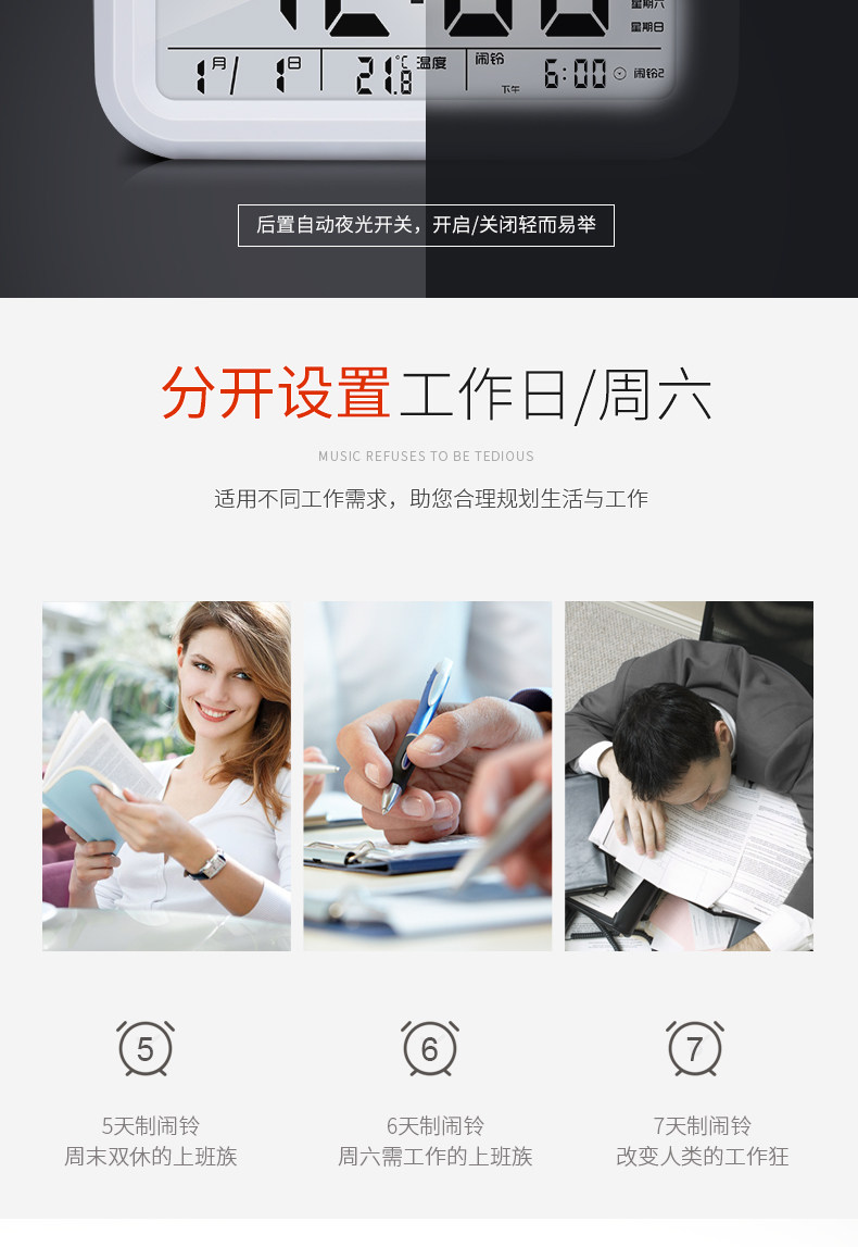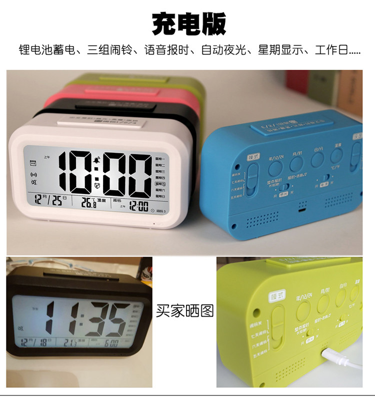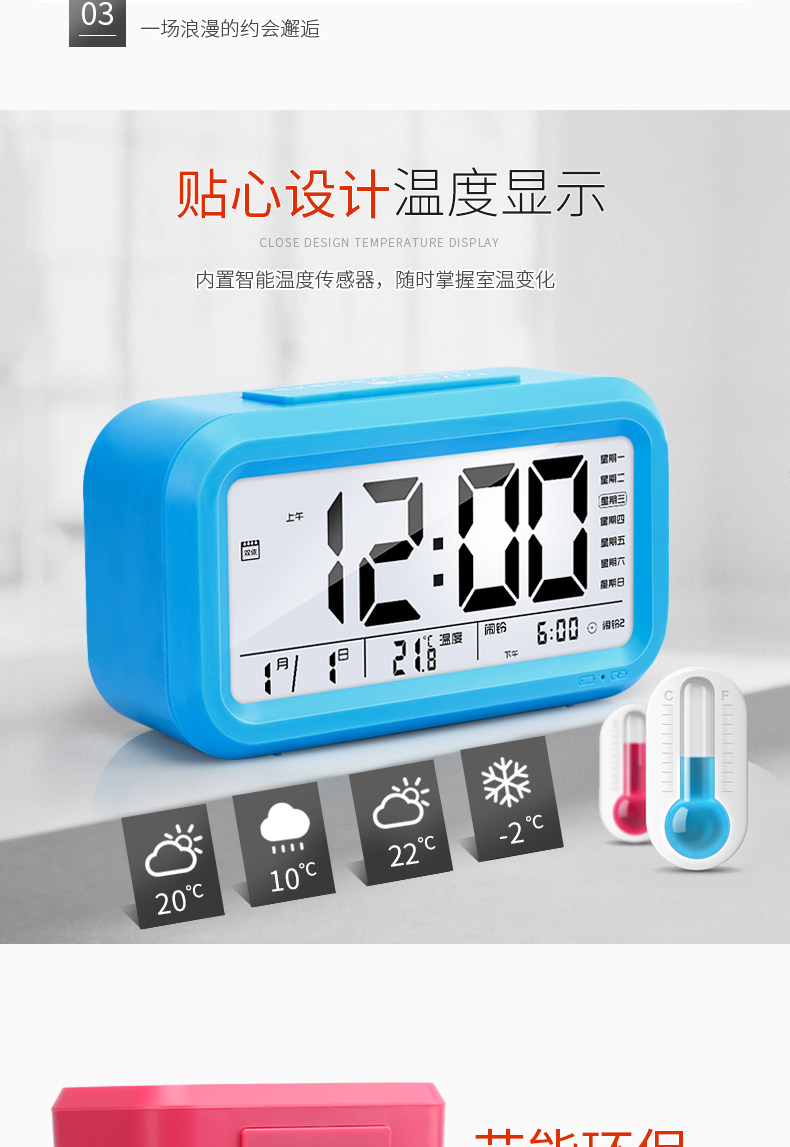 节能大屏,多组闹铃,音乐闹钟,语音播报,带温度显示,智能感光!!!多款多色可选!【赠运费险】