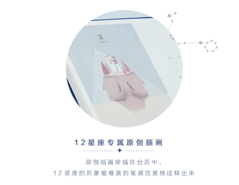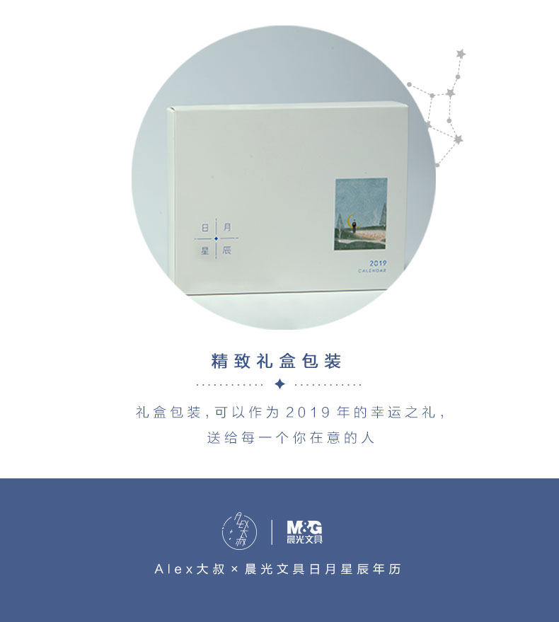 【晨光官方旗舰店】2019日月星辰多功能星座台历,独立包装,原创插画穿插,加大版书写页面,翻页式设计,完美精致礼盒包装。【赠运险费】