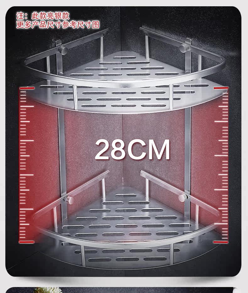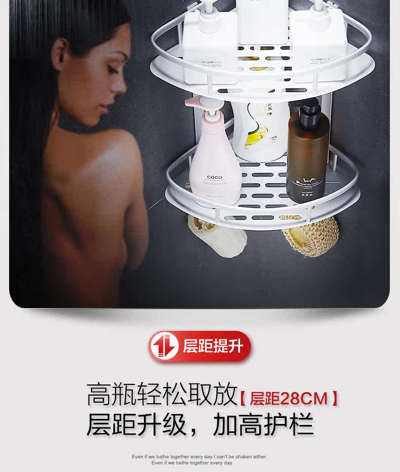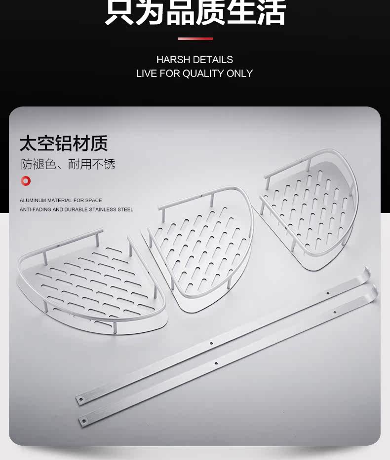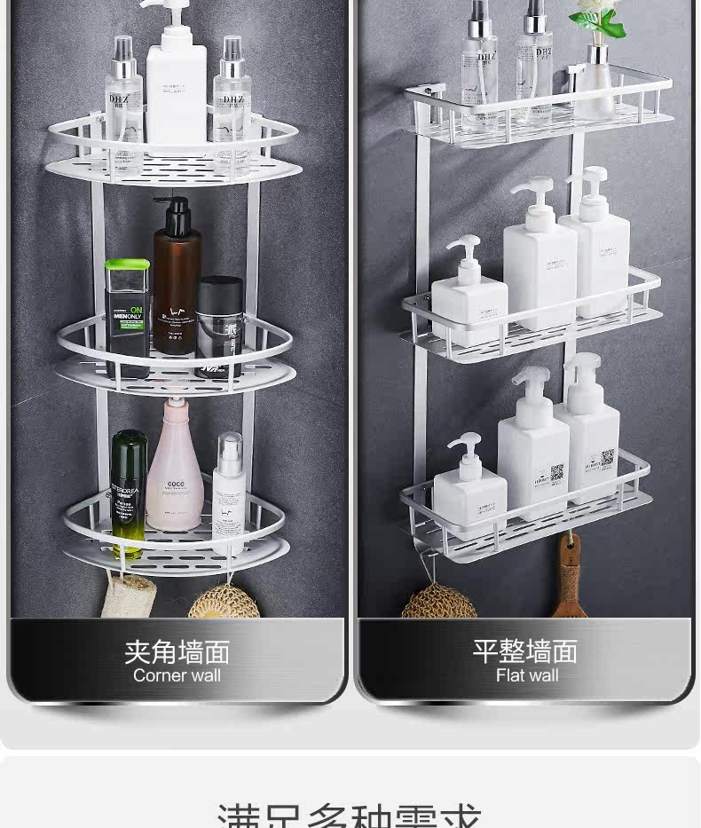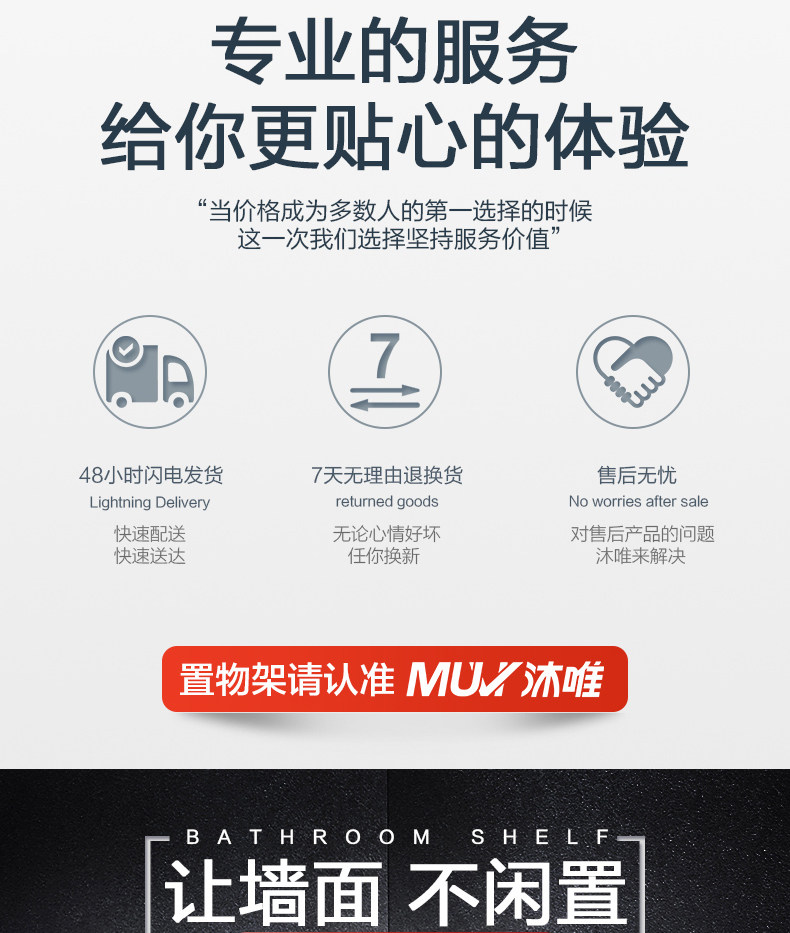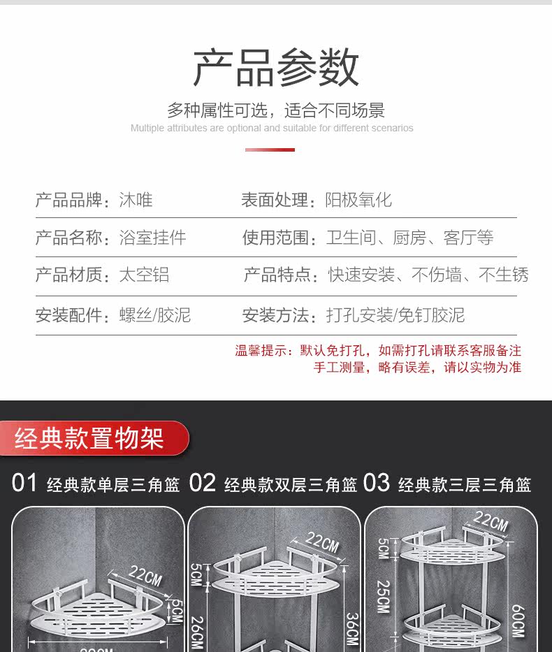 沐唯【免打孔】置物架,太空铝材质,永不生锈,致敬美好生活,承重强,不掉落,10年内掉落免费补发,居家必备。 温馨提示:—-同一个ID,相同地址,差不多时间下单的,有可能会自动合并,如有问题的,可以联系在线客服。