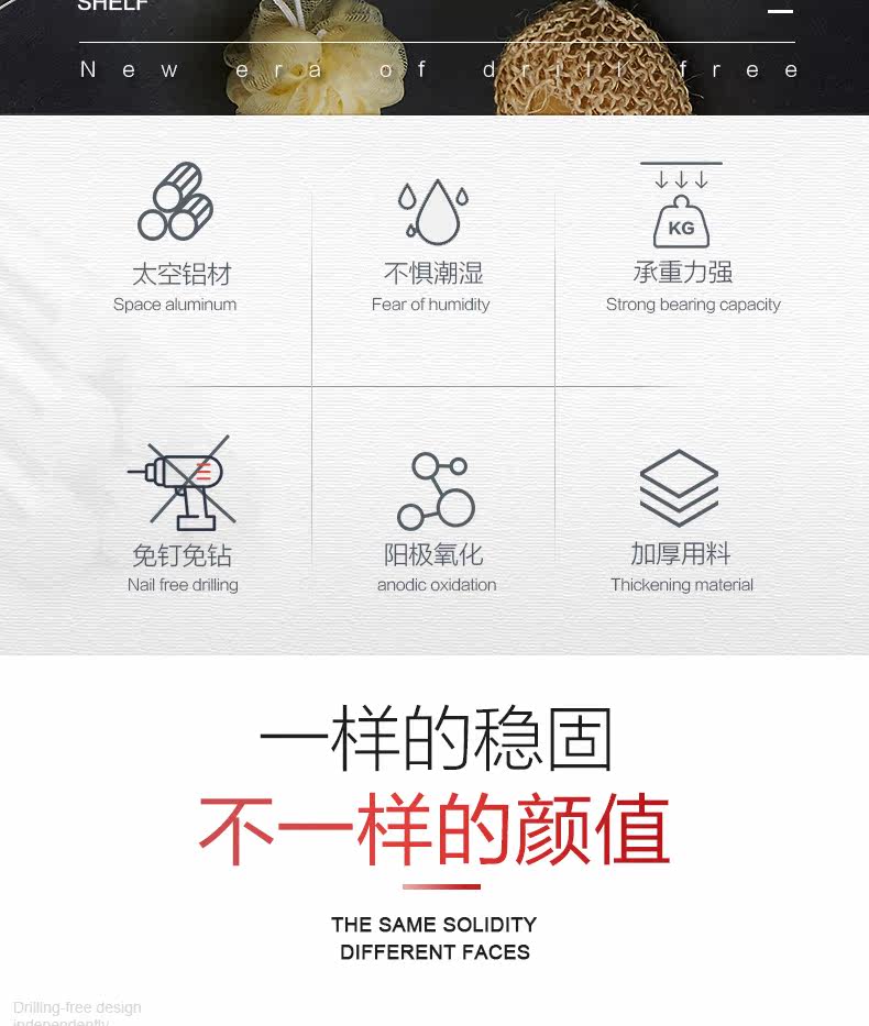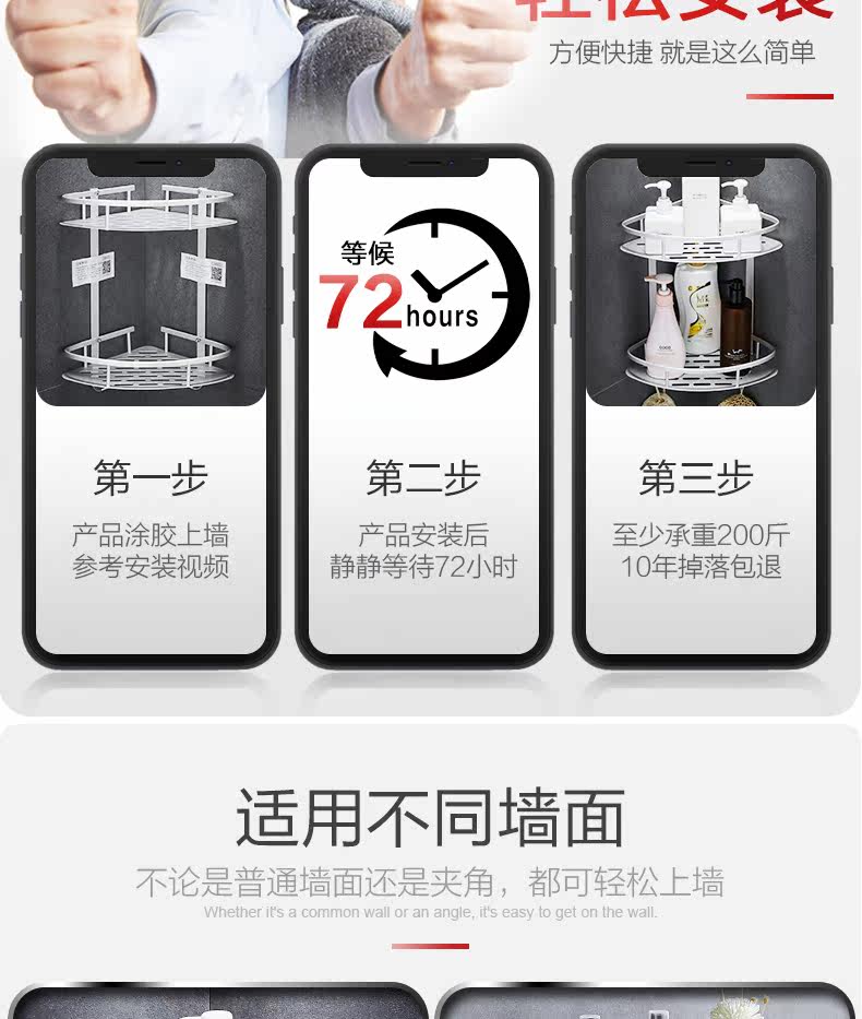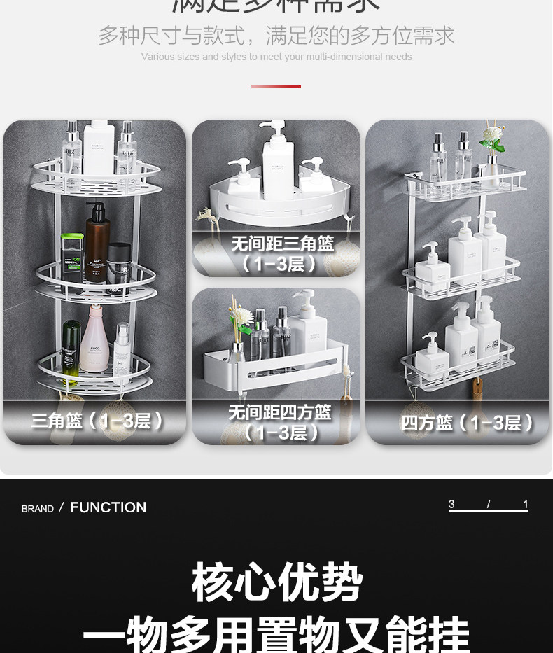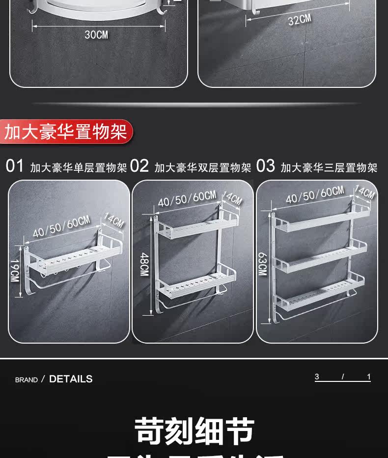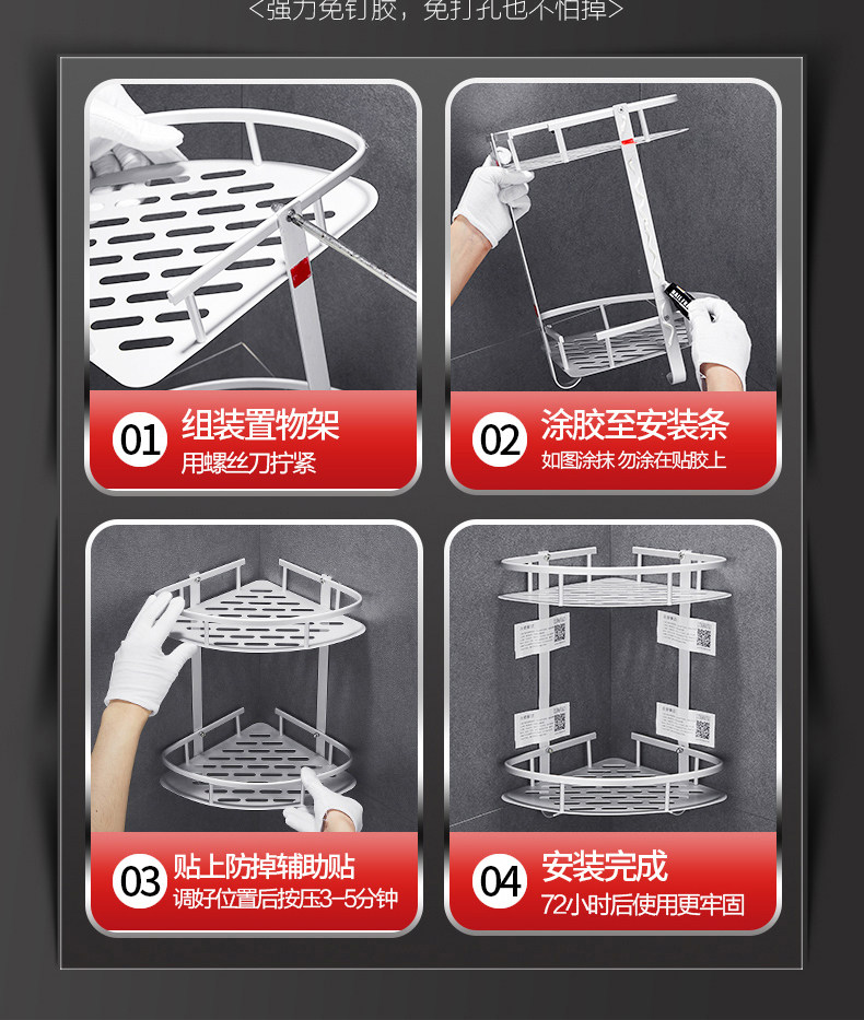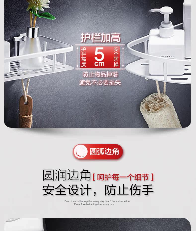 沐唯【免打孔】置物架,太空铝材质,永不生锈,致敬美好生活,承重强,不掉落,10年内掉落免费补发,居家必备。 温馨提示:—-同一个ID,相同地址,差不多时间下单的,有可能会自动合并,如有问题的,可以联系在线客服。
