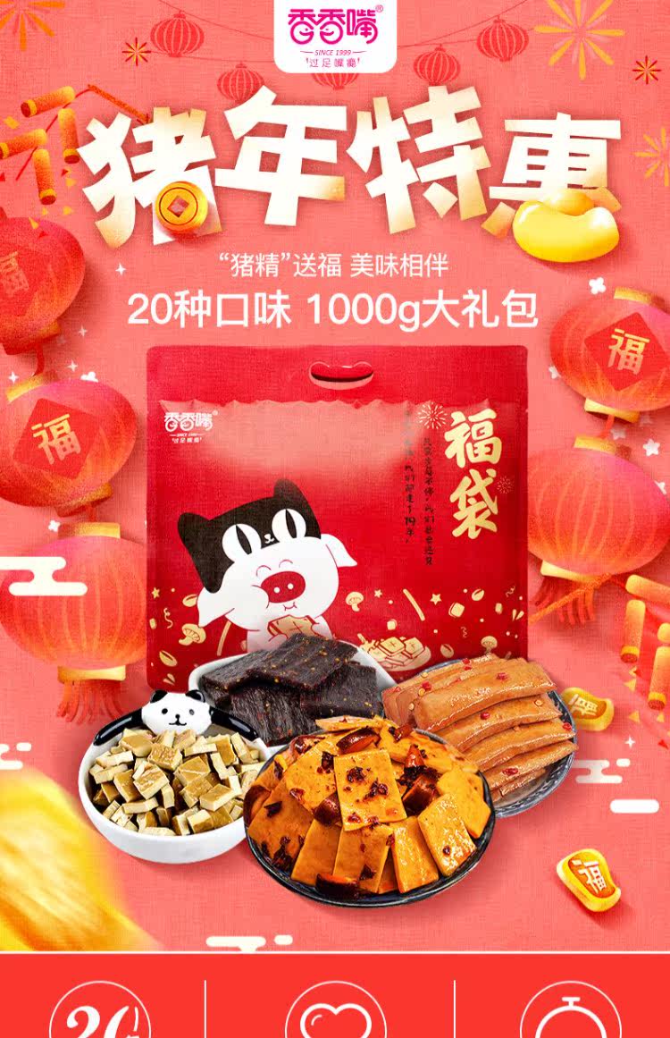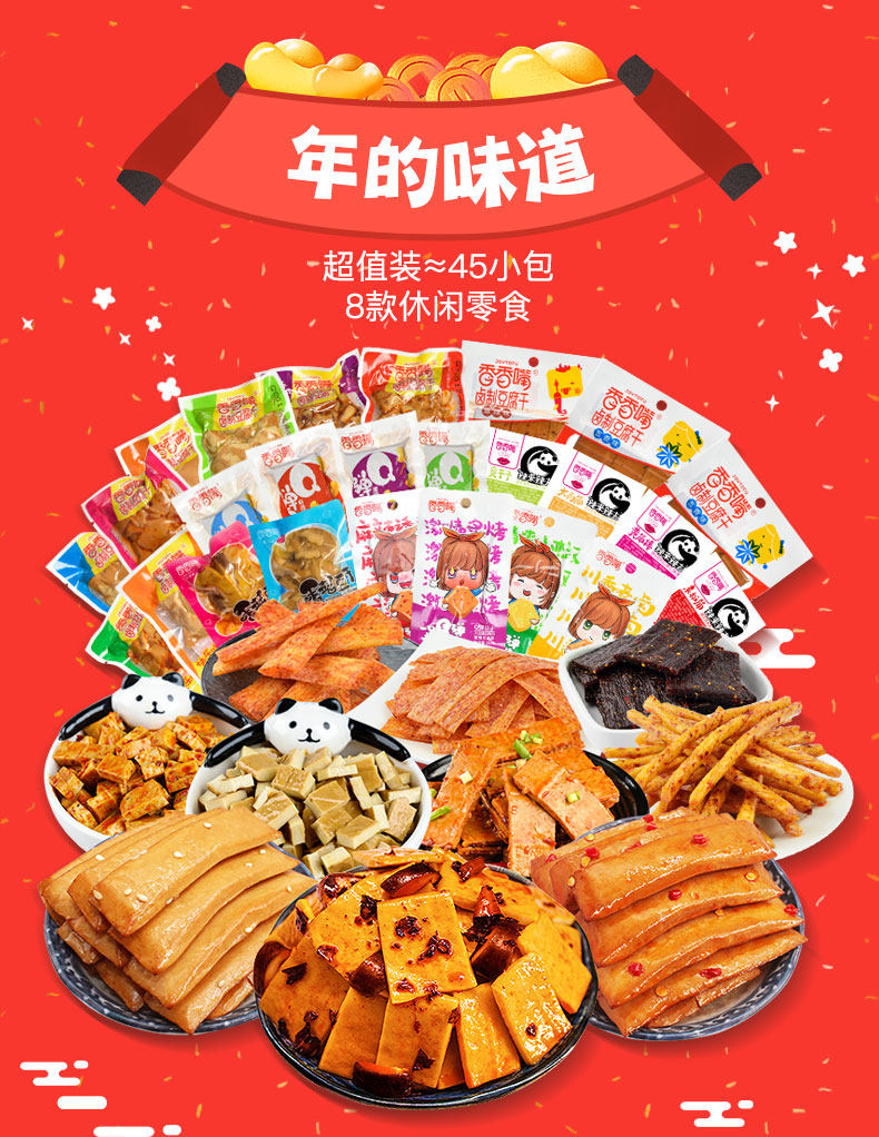 香香嘴麻辣豆干辣条零食1000g大礼包
