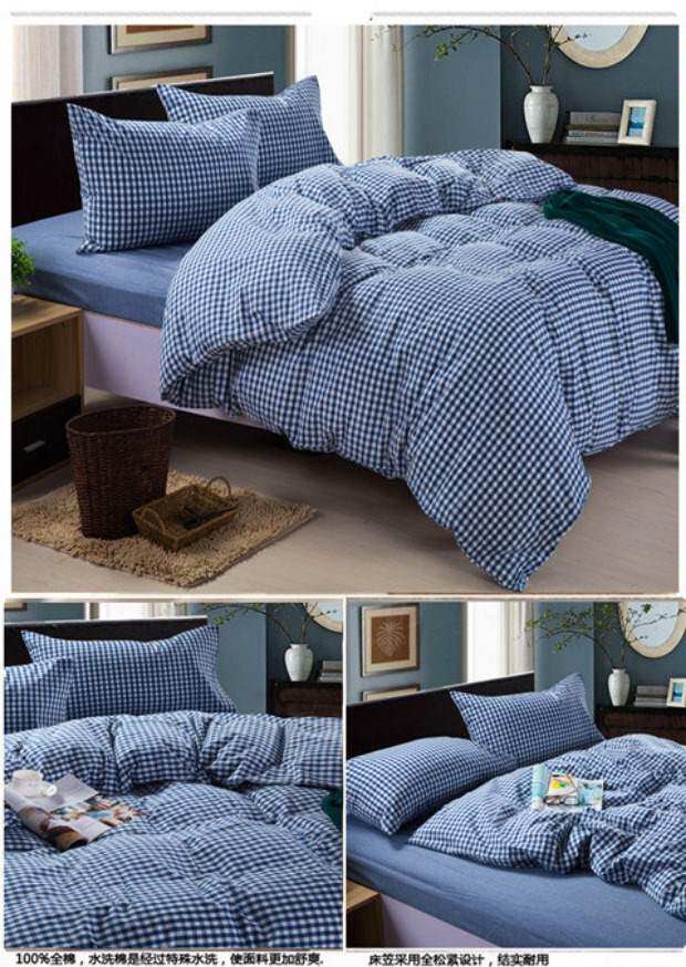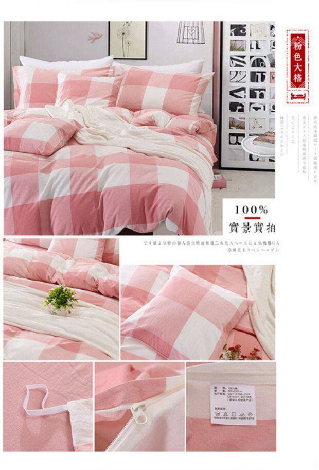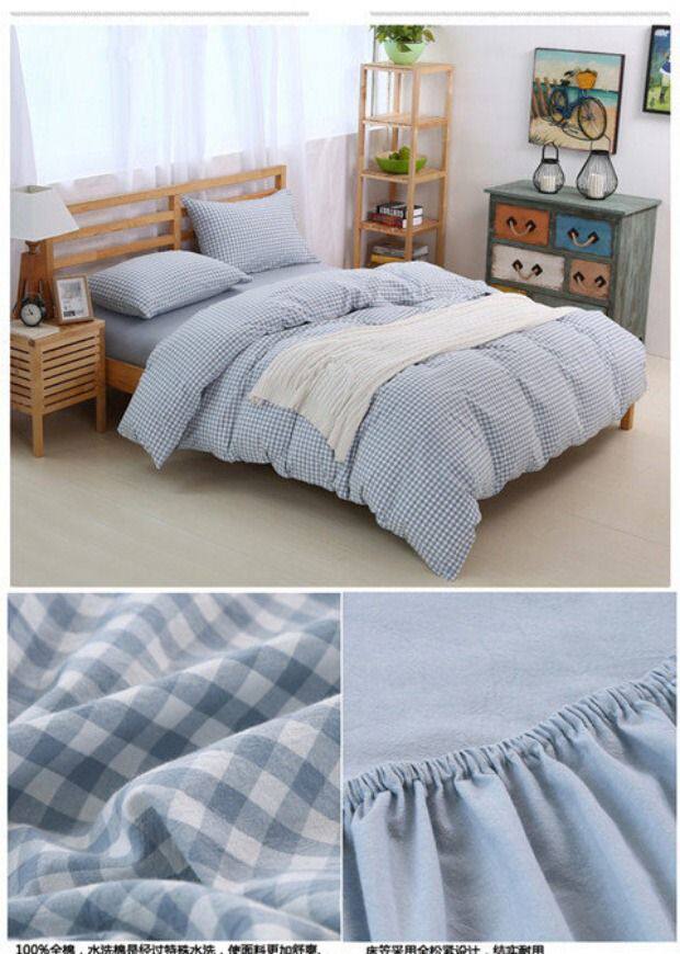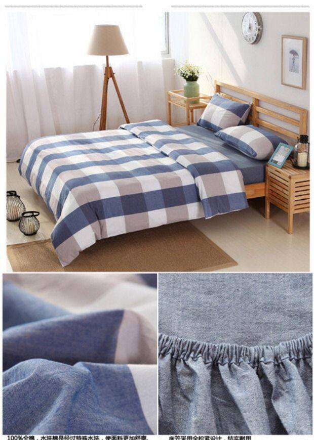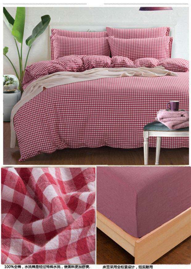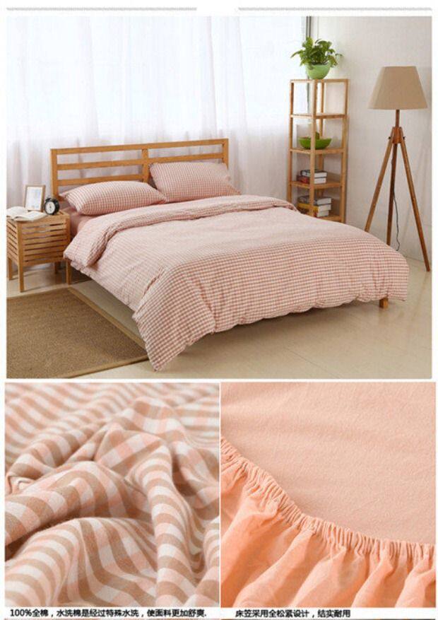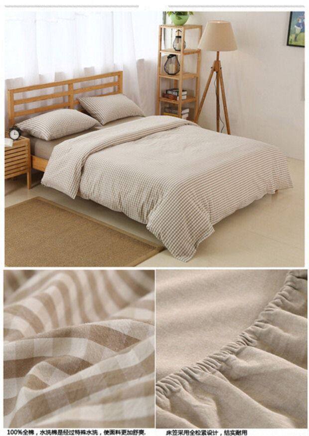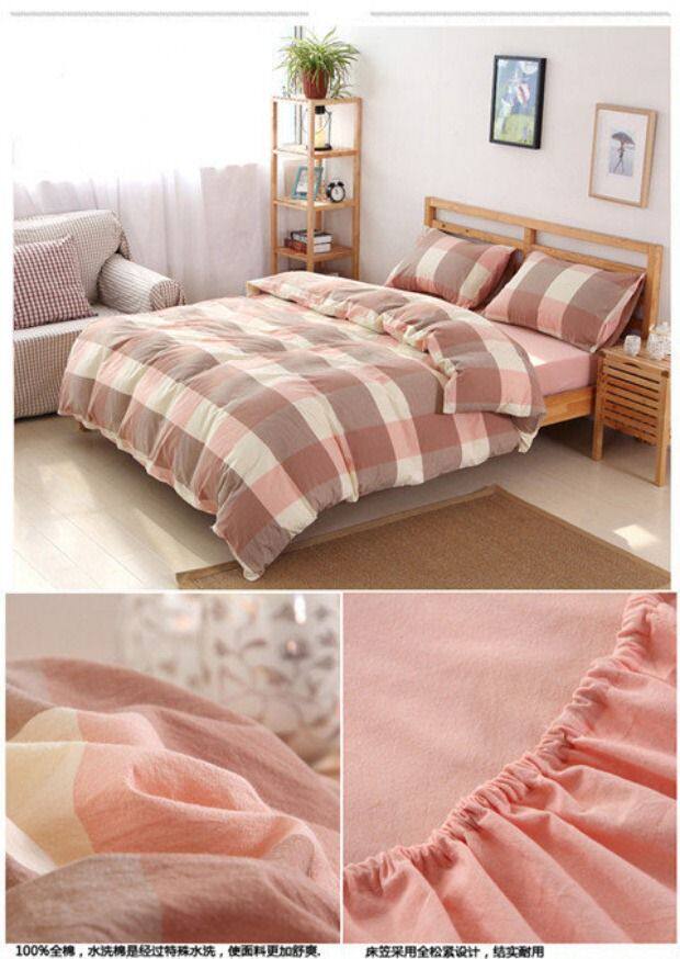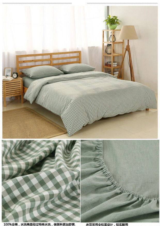 无印良品水洗棉床笠四件套,床上用品,格子被套,全棉简约床单,三件套,15天无理由退货,1次破损补寄,赚运费险。