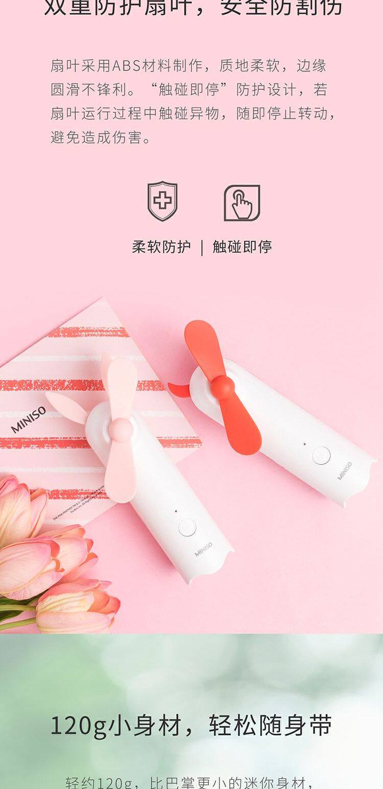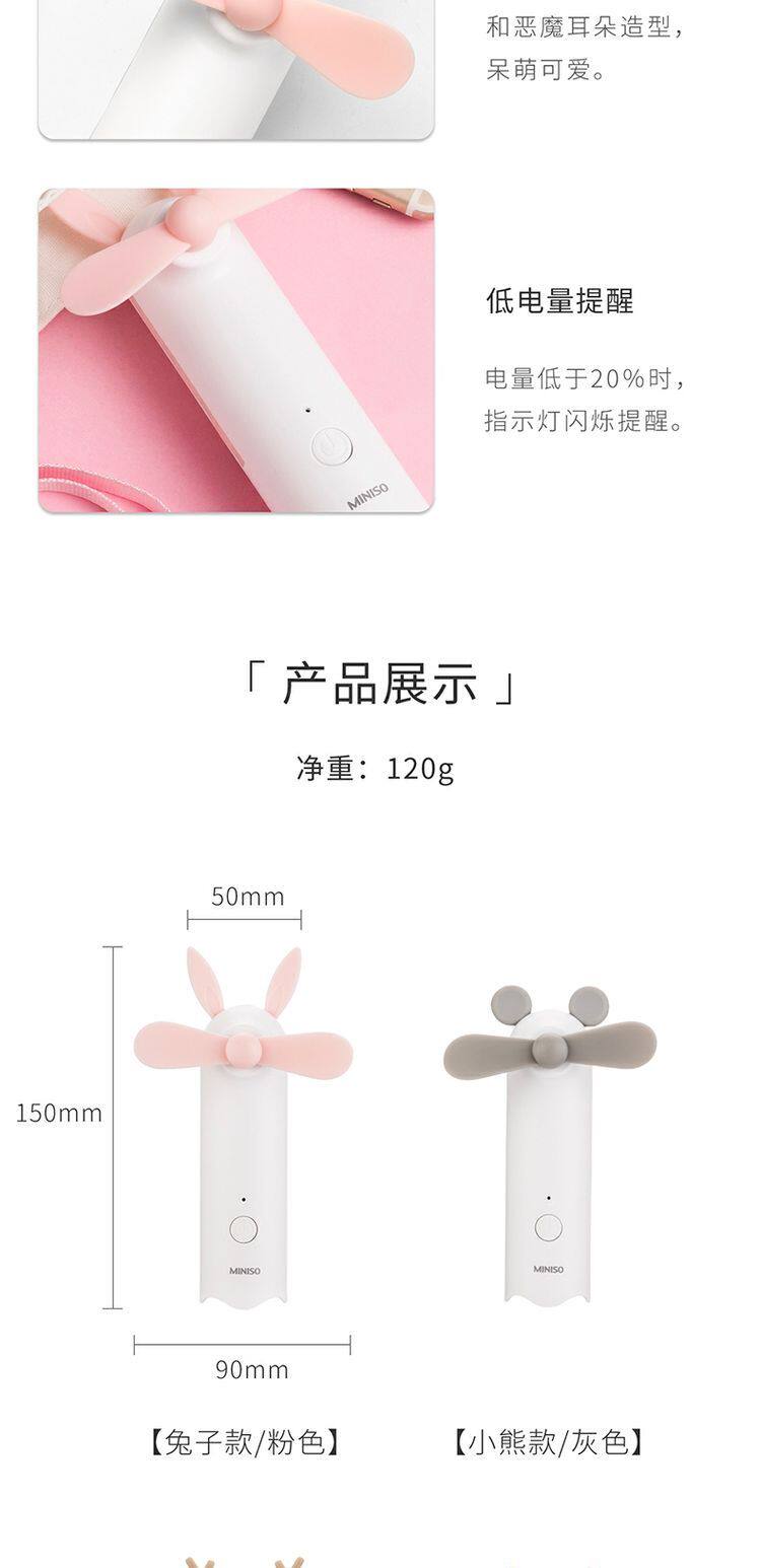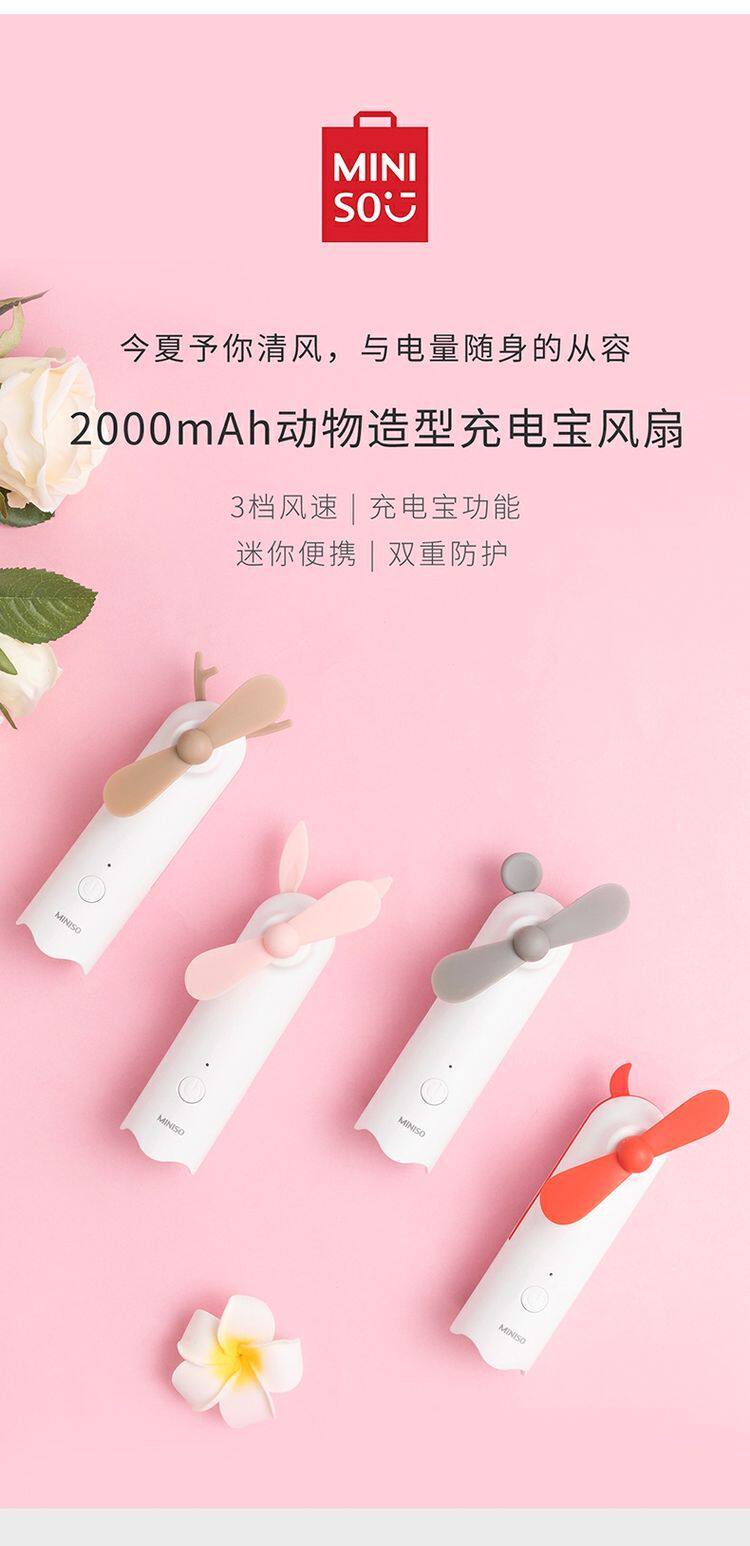 【miniso名创优品】门店同款,大牌MINISO,风靡全球的快时尚设计师品牌!风速3档调节,二合一充电宝手持电风扇,配挂绳便携出行,可爱造型,不要错过!【赠运费险】