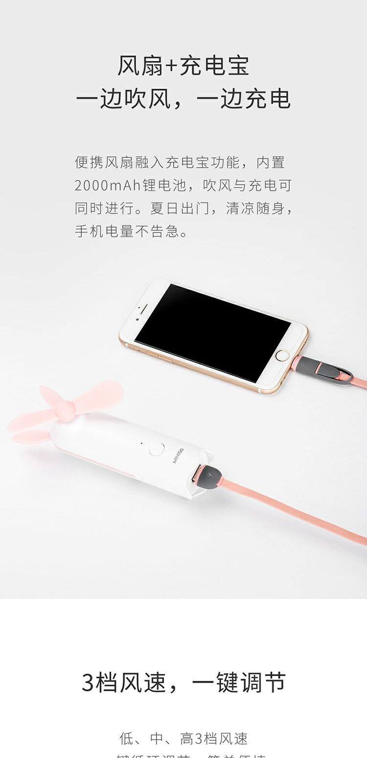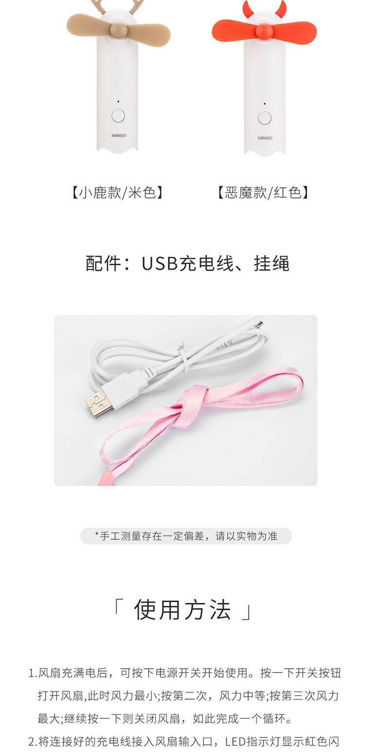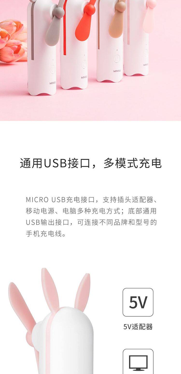 【miniso名创优品】门店同款,大牌MINISO,风靡全球的快时尚设计师品牌!风速3档调节,二合一充电宝手持电风扇,配挂绳便携出行,可爱造型,不要错过!【赠运费险】
