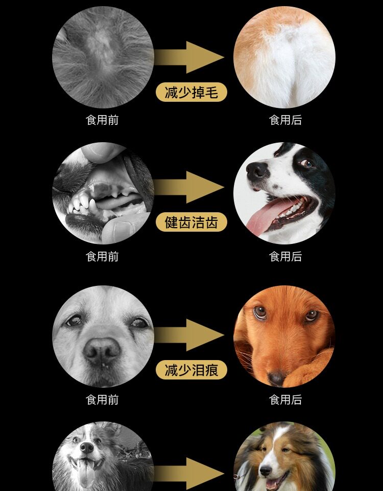 【不吃包退】口啤之选,适口性好,甄选天然优质食材,富含膳食纤维蛋白质,提高免疫力,减缓泪痕,调理肠胃,强健骨骼,保护牙齿,除牙菌斑,清新口气,滋养皮毛有光泽,粪便除臭,让狗狗健康成长。