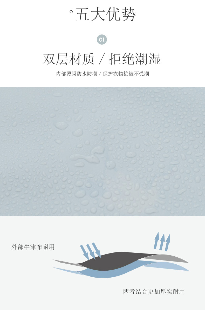 双绑带双拉链设计很有特色,里面容量很足!!换季了美美的衣服都得换下来存放好,可以防水又能防潮!PS:拍2件送1件