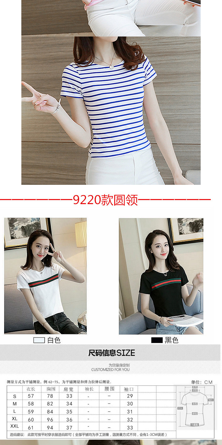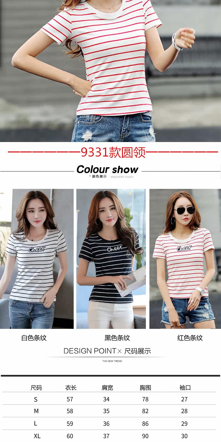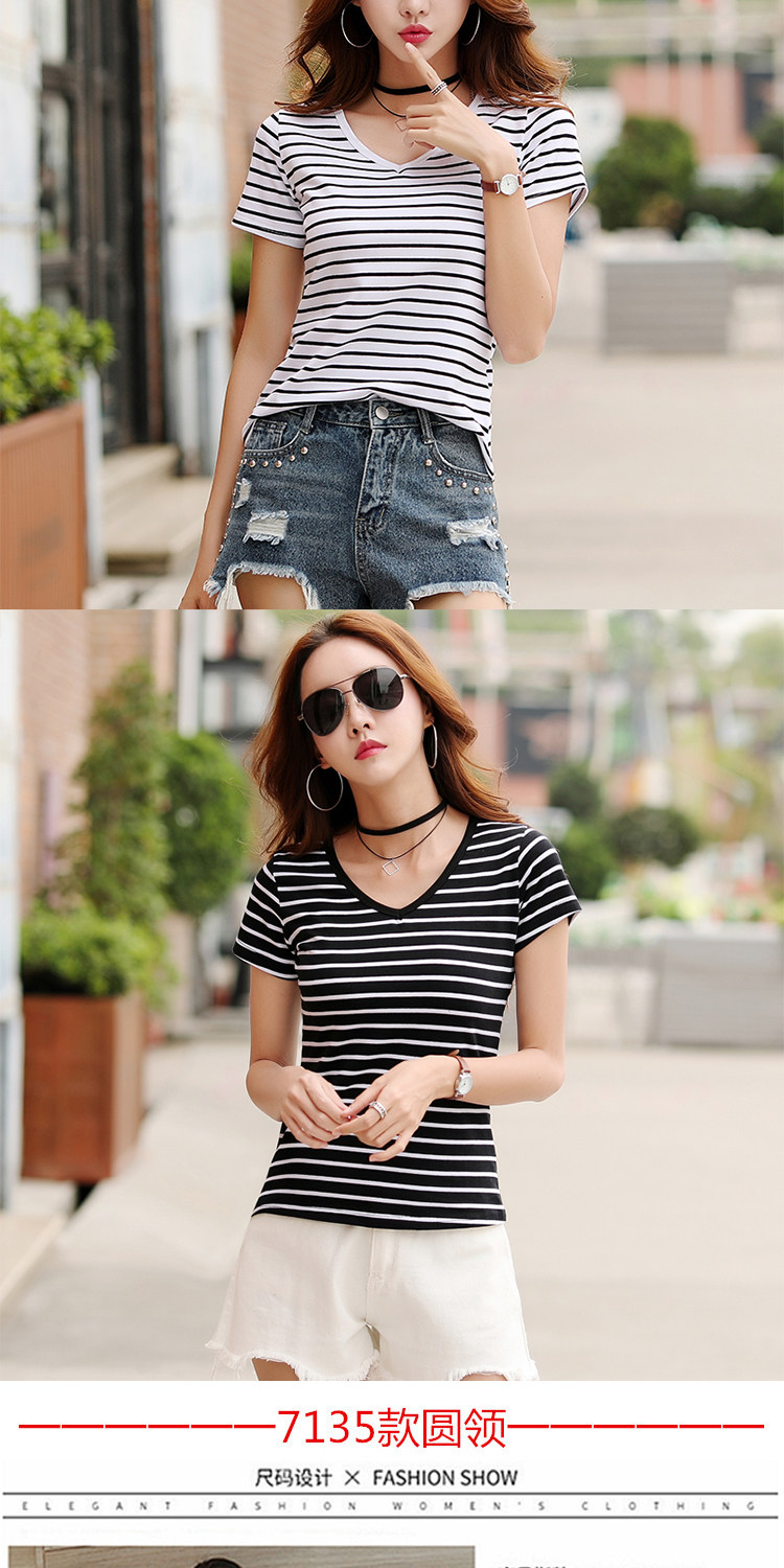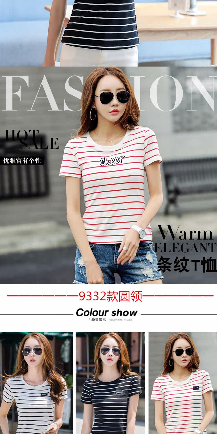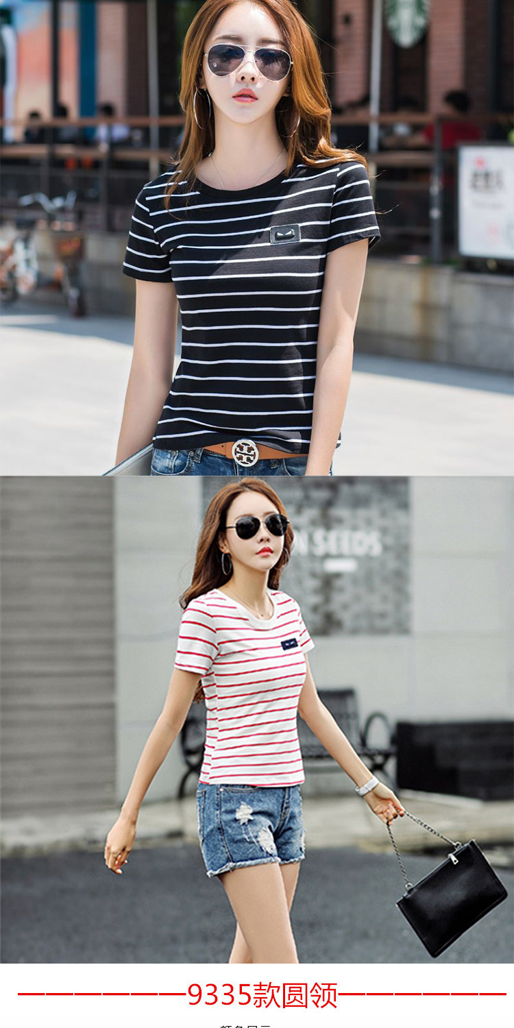 网红同款!条纹修身打底衫百搭体恤上衣潮