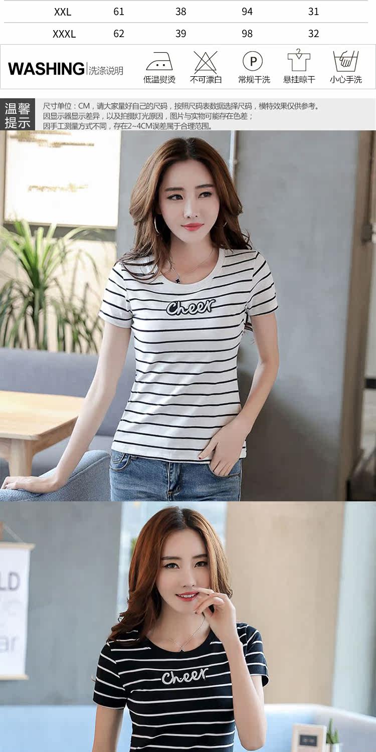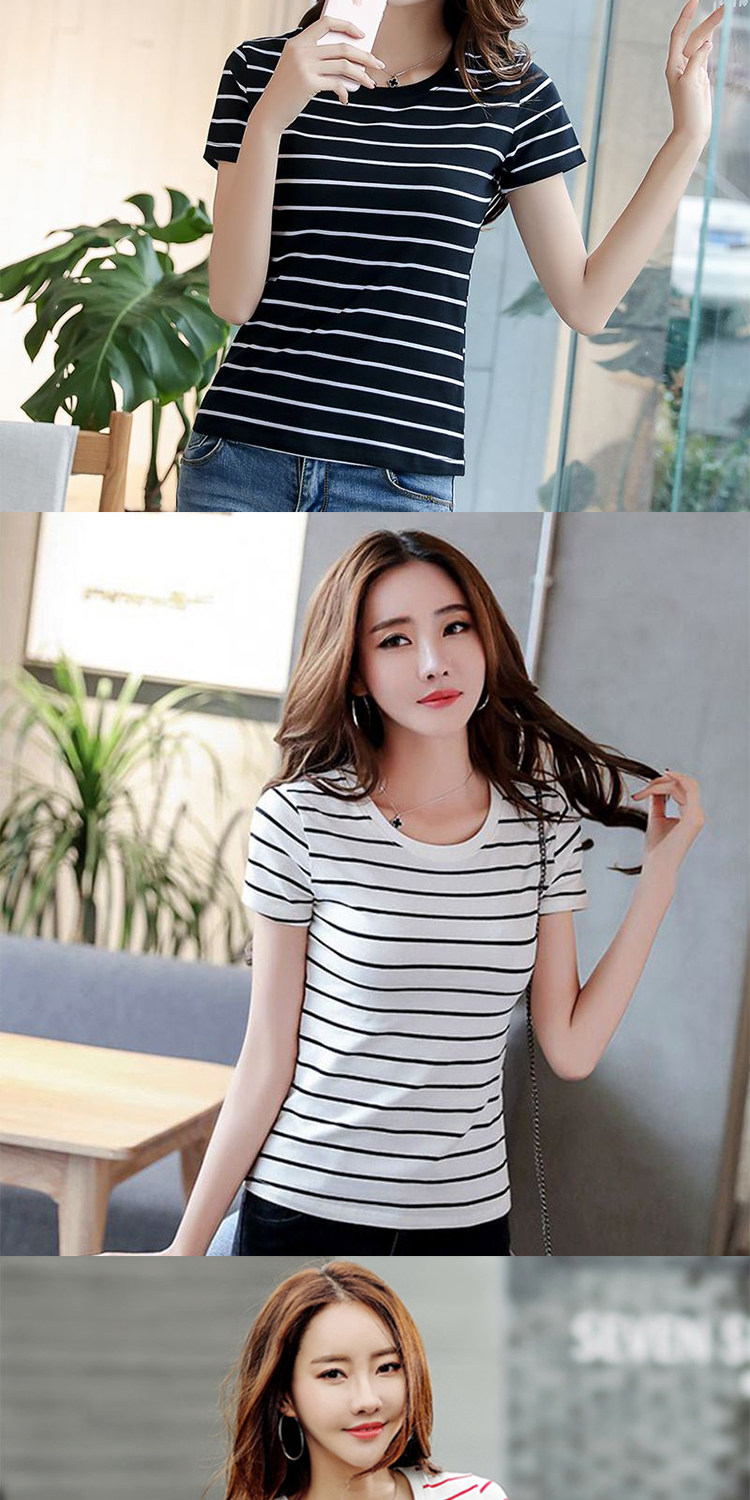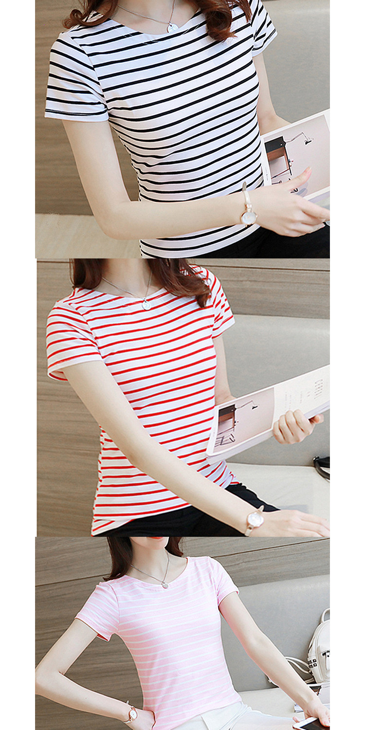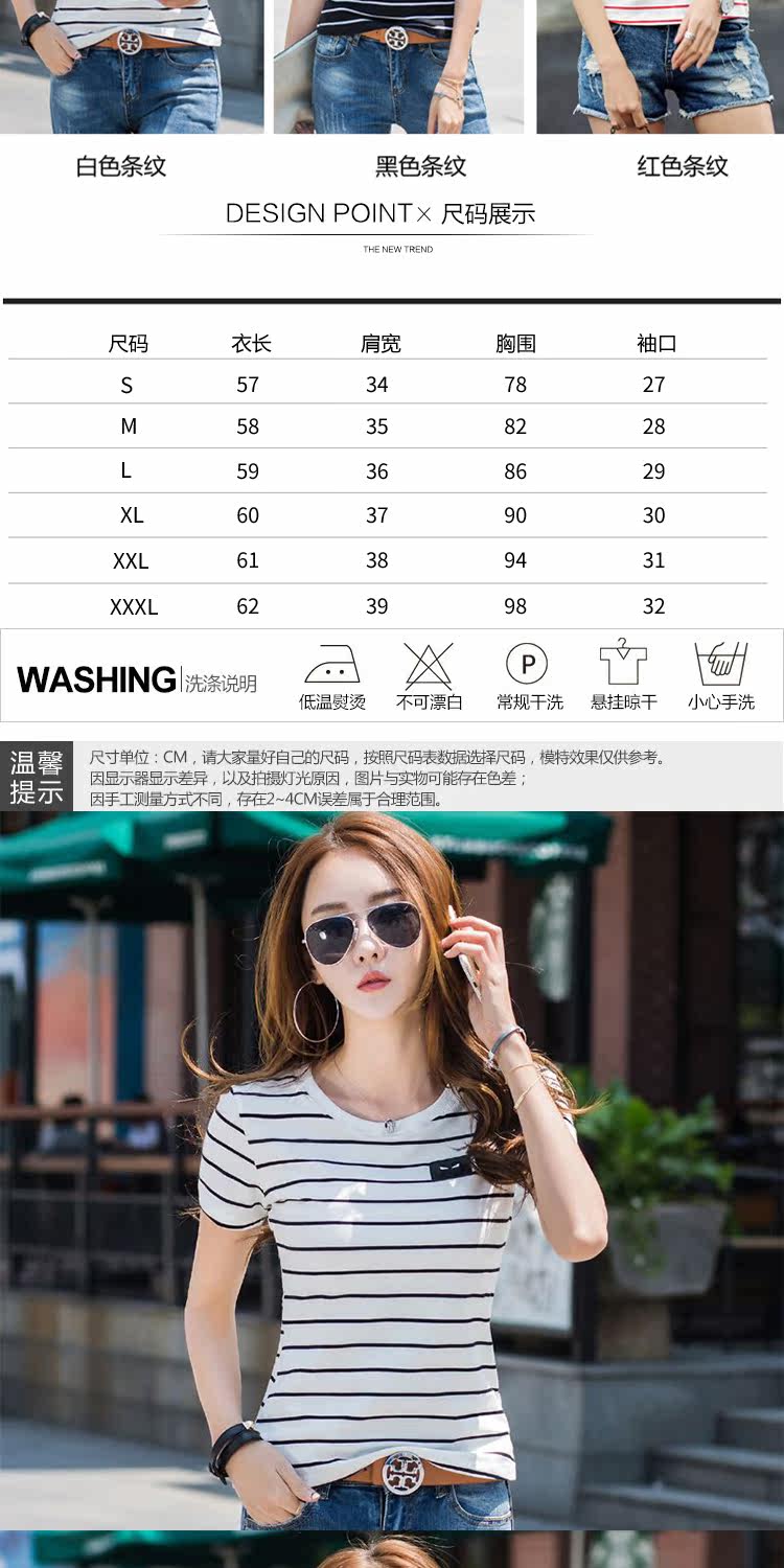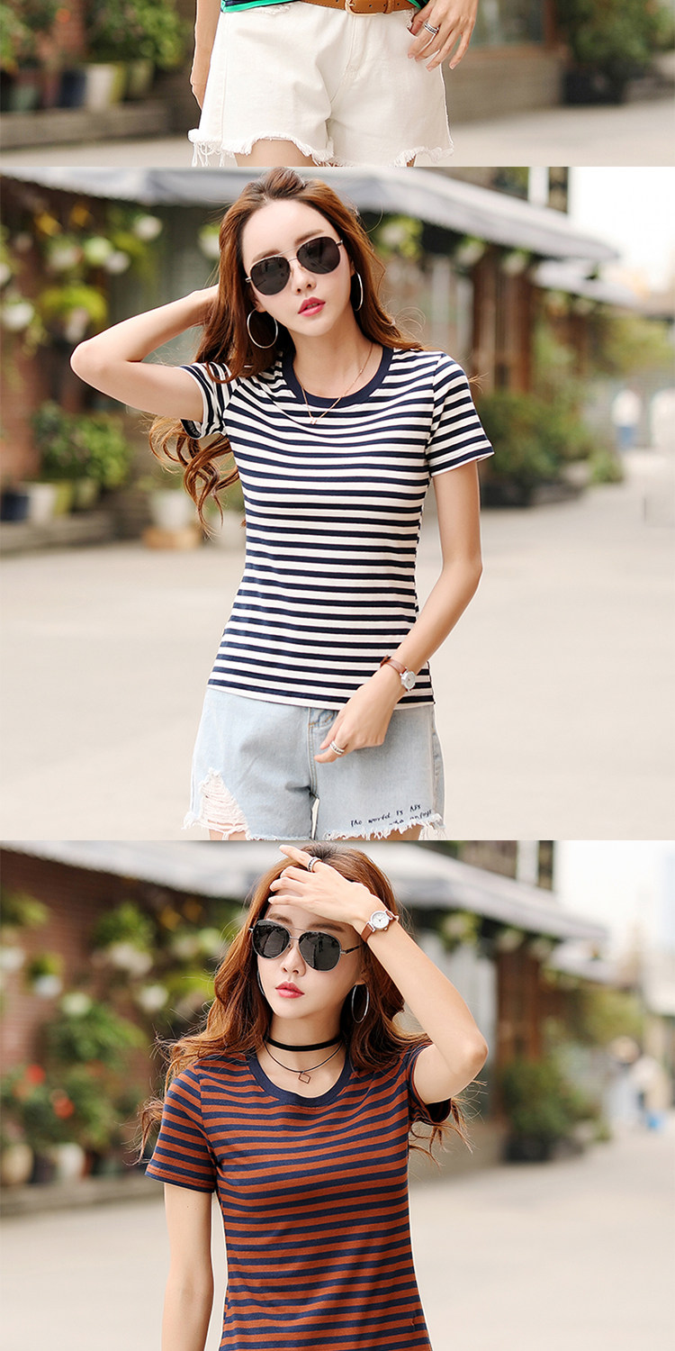网红同款!条纹修身打底衫百搭体恤上衣潮