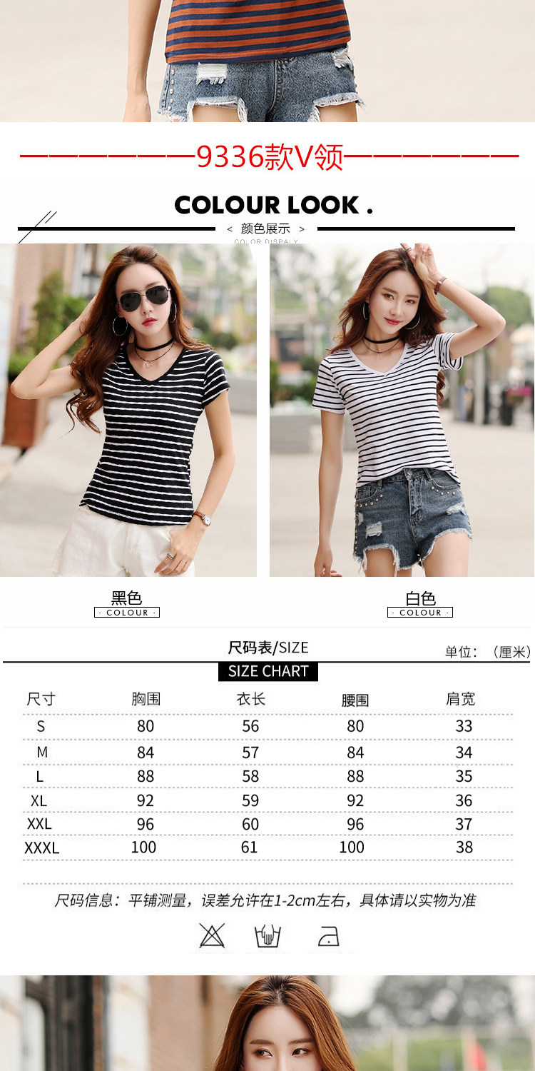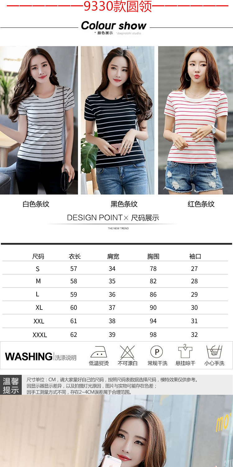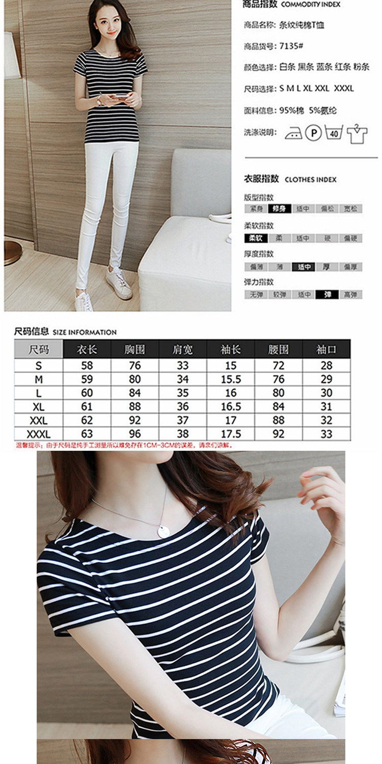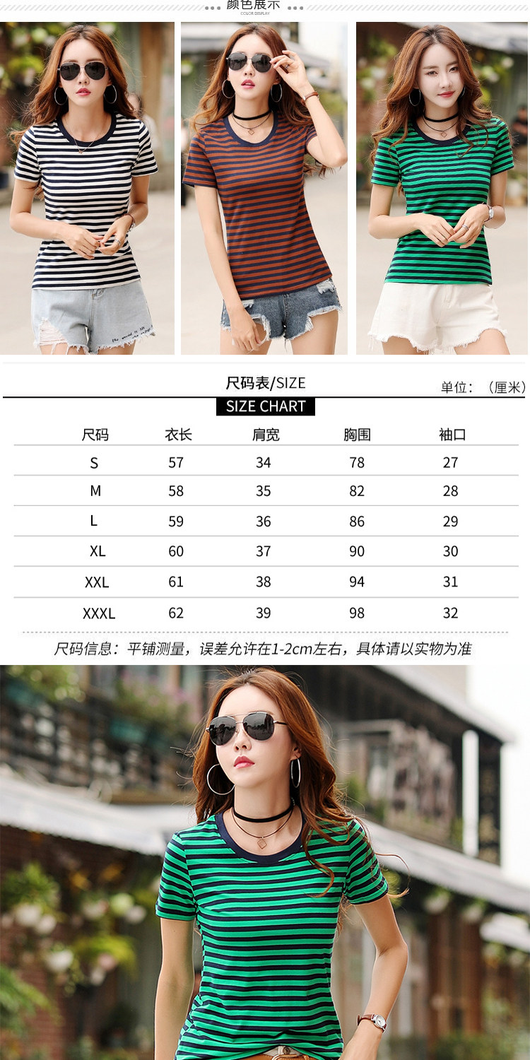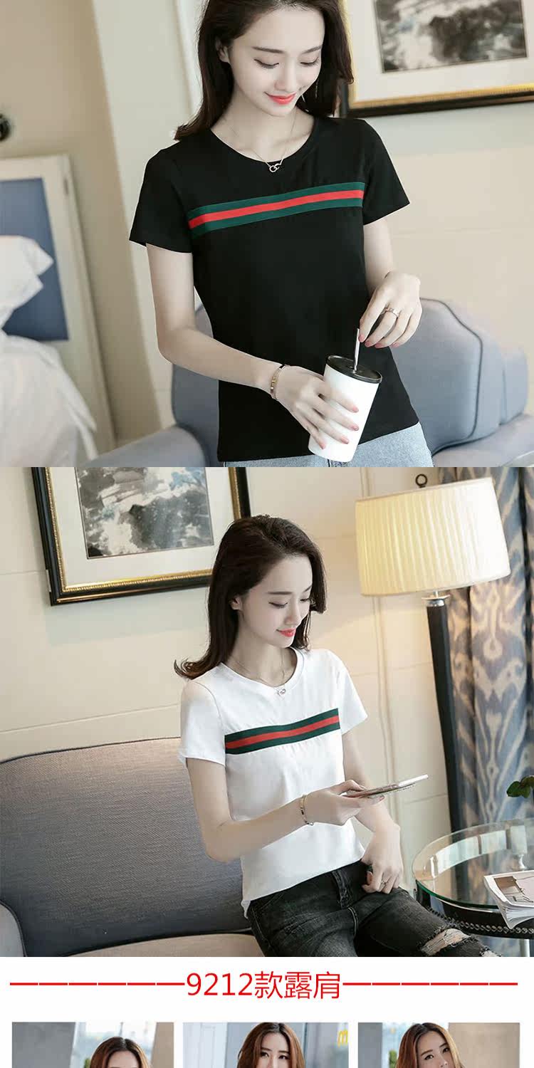 网红同款!条纹修身打底衫百搭体恤上衣潮