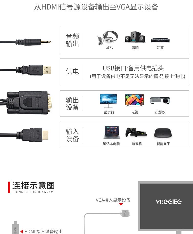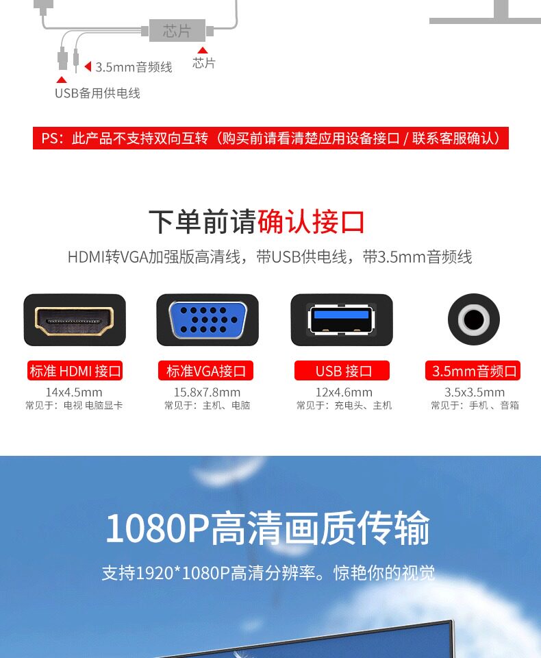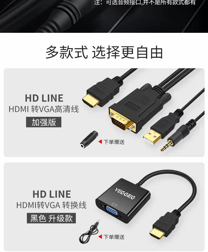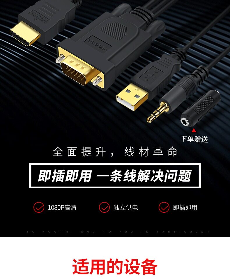 hdmi转vga转接头电脑投影仪连接线,带声音带供电可用多种电子设备,性能稳定画质清晰,多款式随心选择。