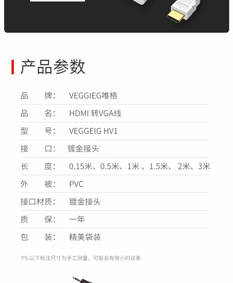 唯格hdmi转vga接头电脑连接转换线