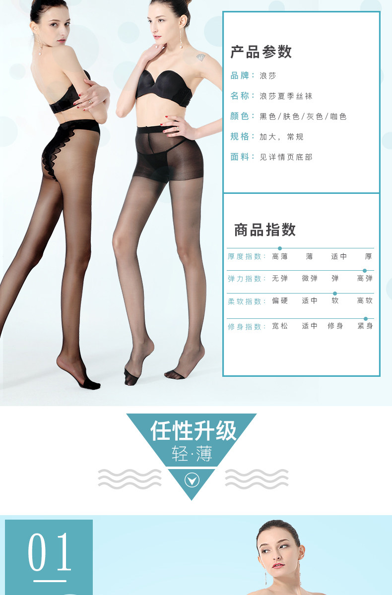 拍两件29.9浪莎防脱丝超薄连裤丝袜2双
