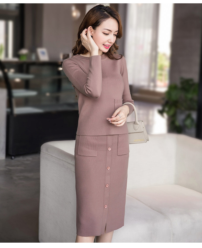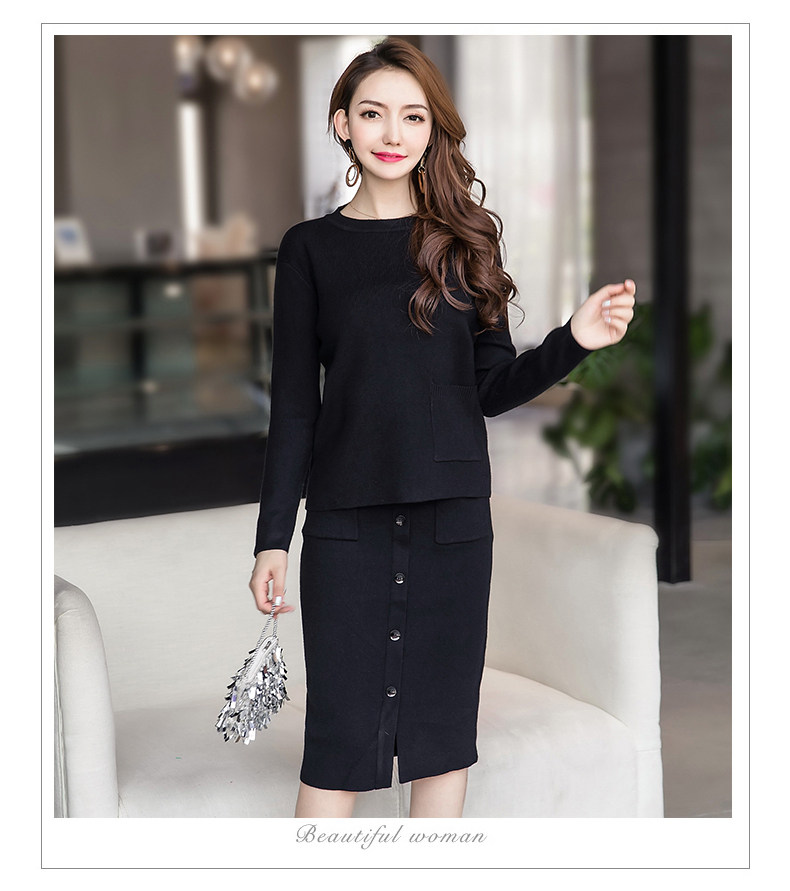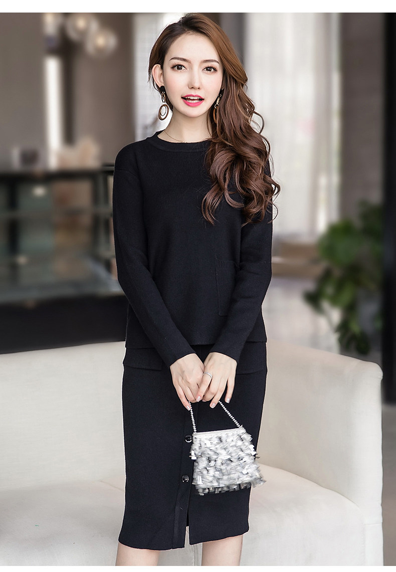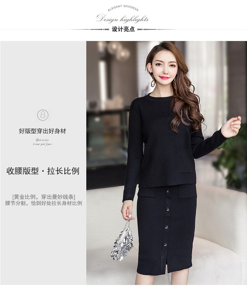 时尚【针织毛衣+显瘦套裙】