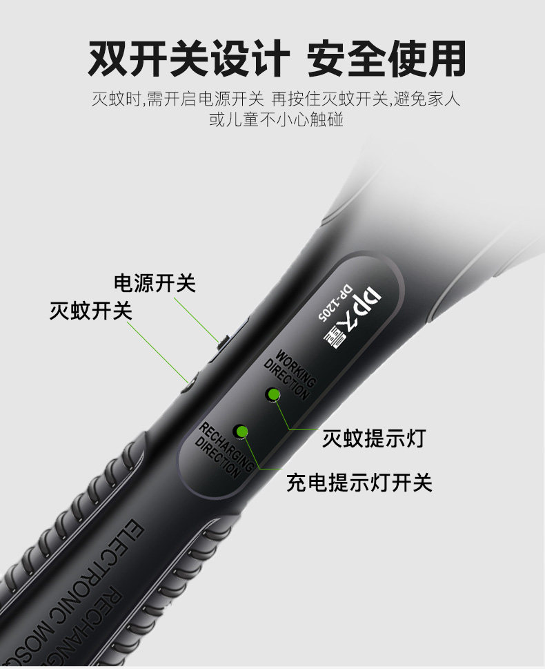 【谢娜代言】充电式LED锂电灭蚊拍