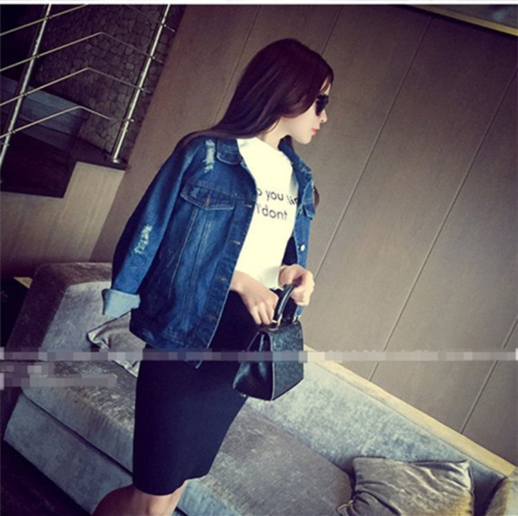 懵懂依恋 女士宽松破洞牛仔外套