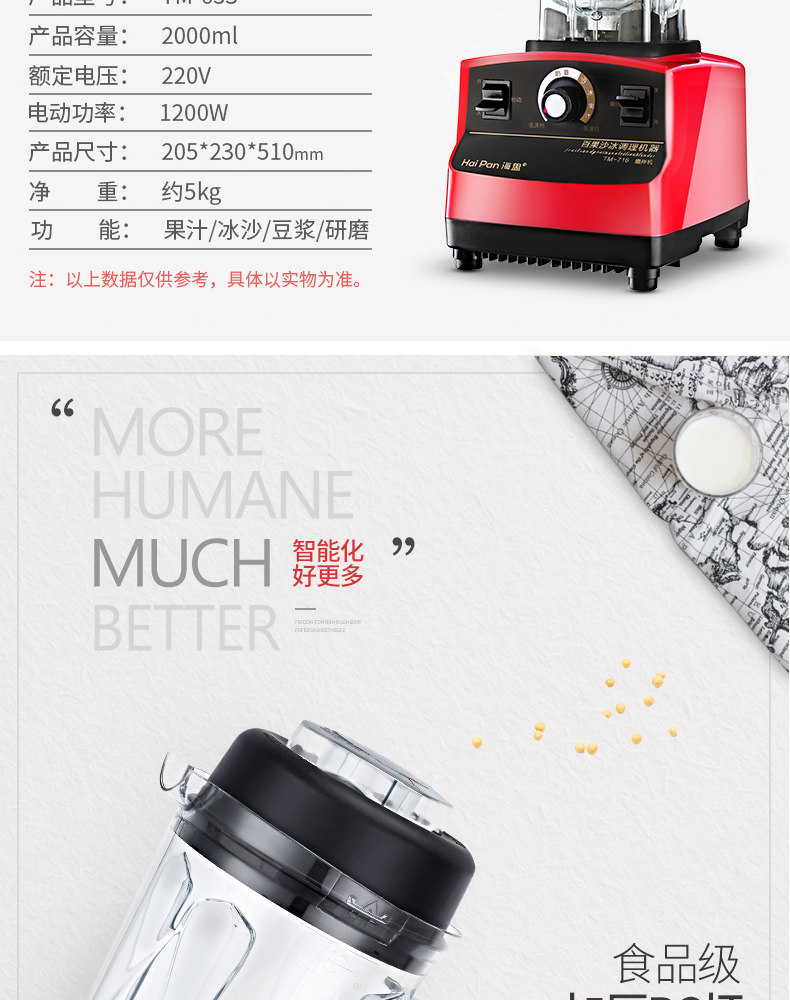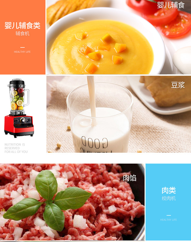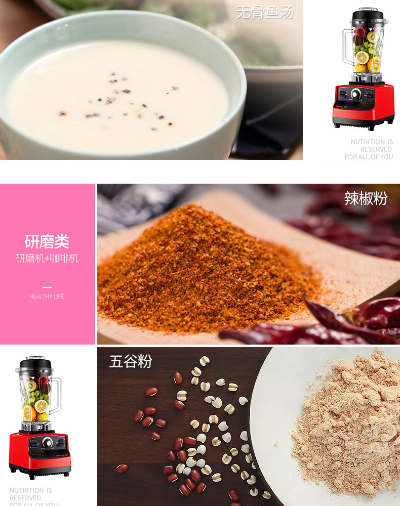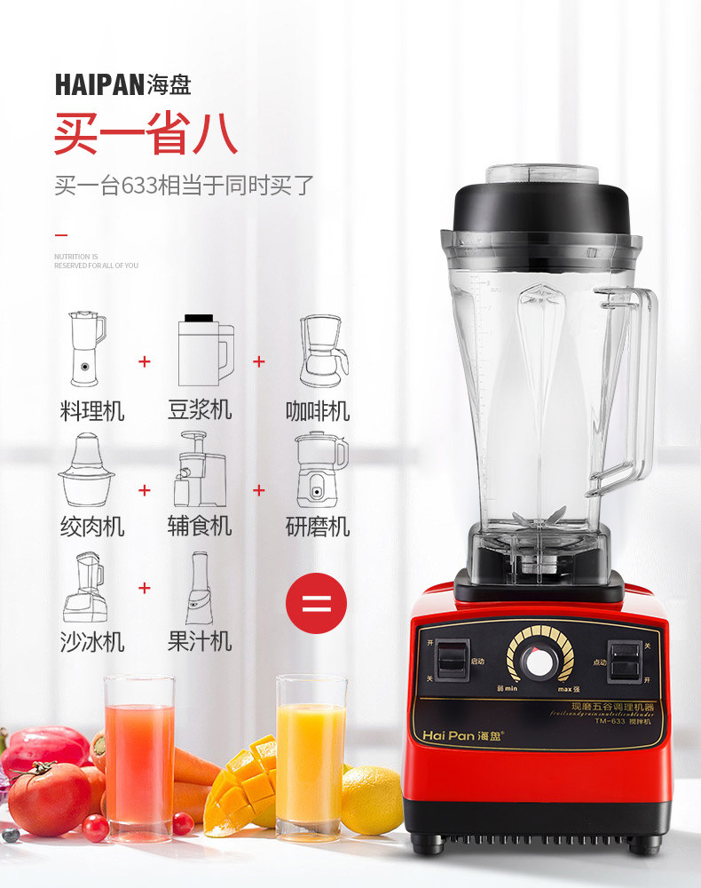 商场同款,一机多用,高转速1350w大马力多功能榨汁机,商用私房菜奶茶店酒杯餐厅,奶茶冰沙、咖啡机,豆浆、榨汁、绞肉等功能一机搞定!碎骨碎冰毫无压力,降噪静音,高颜值有逼格!