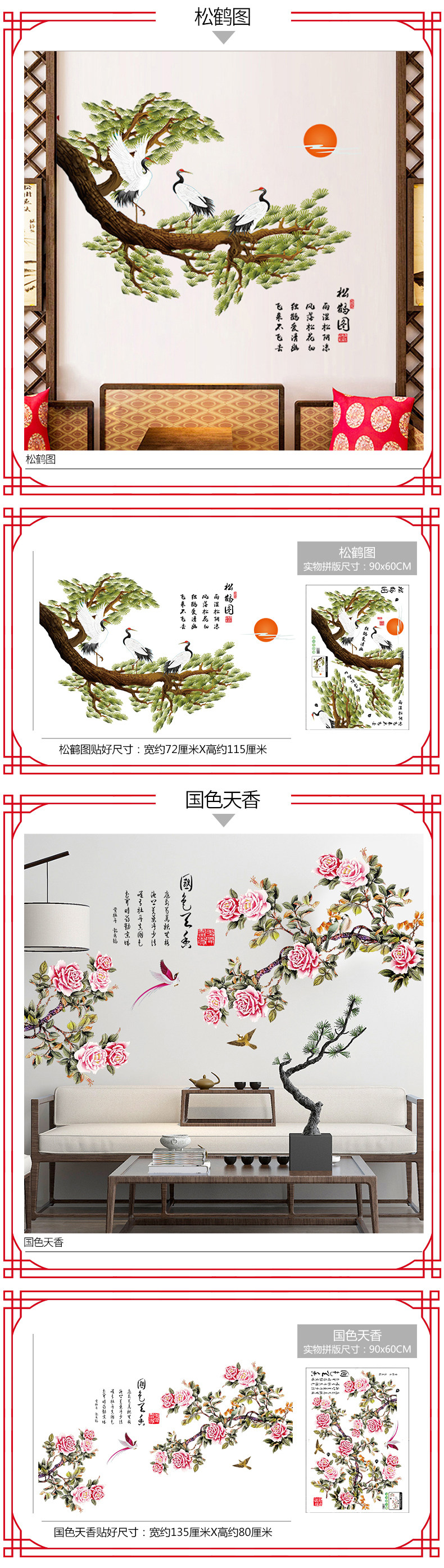 中国风3D立体墙贴画创意壁纸