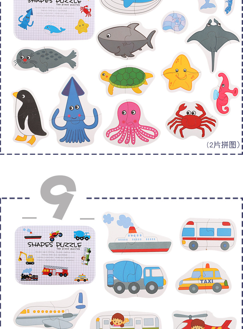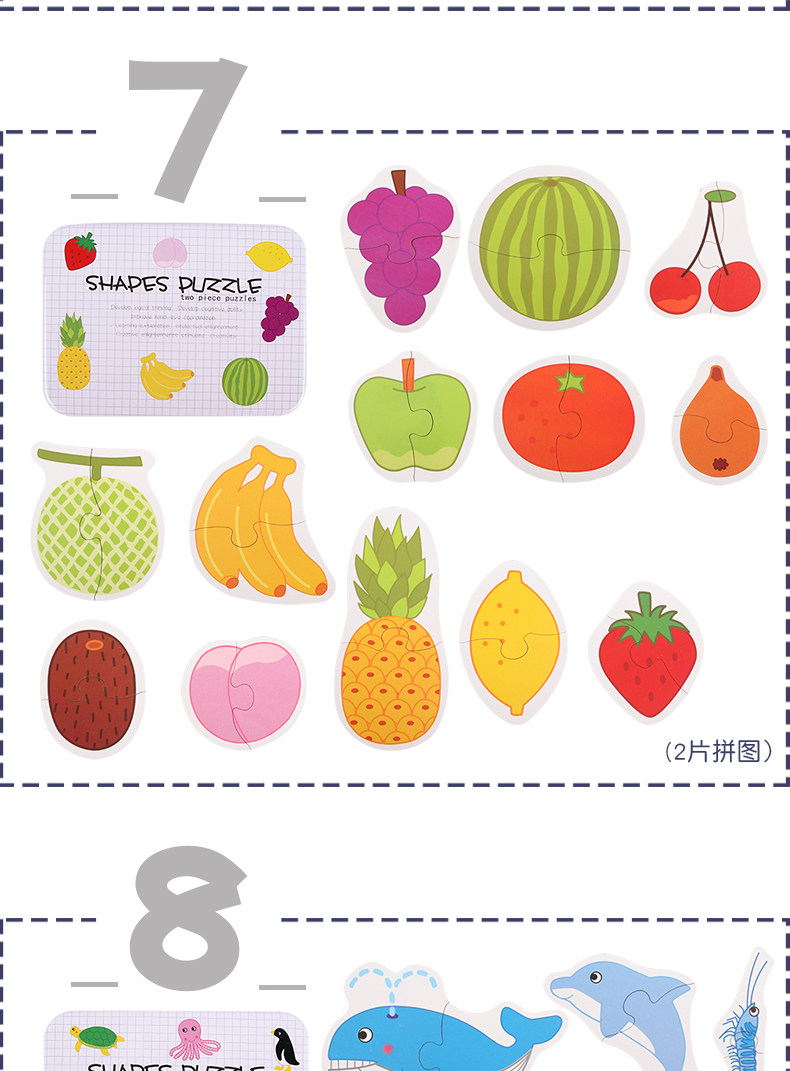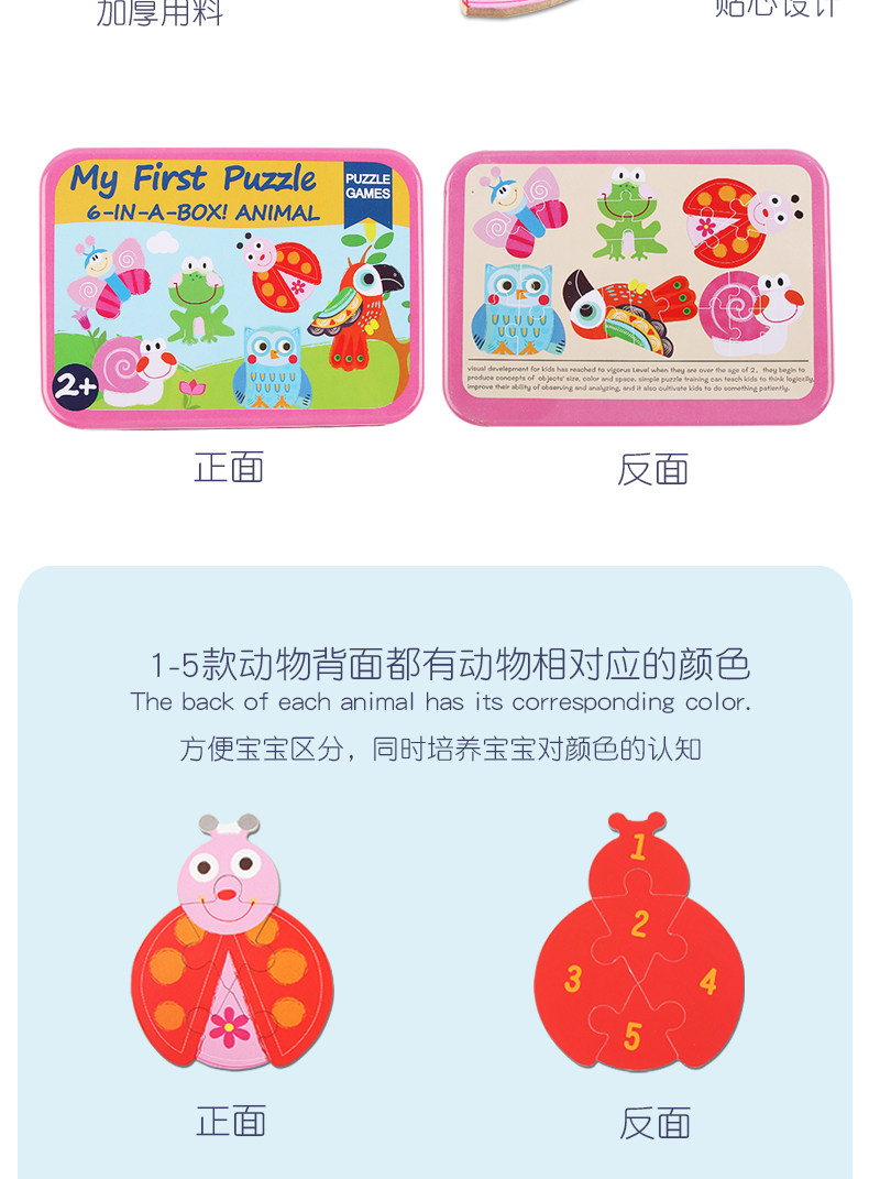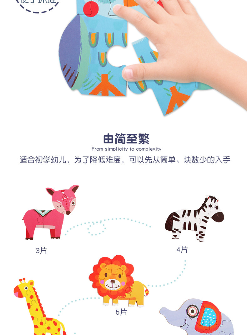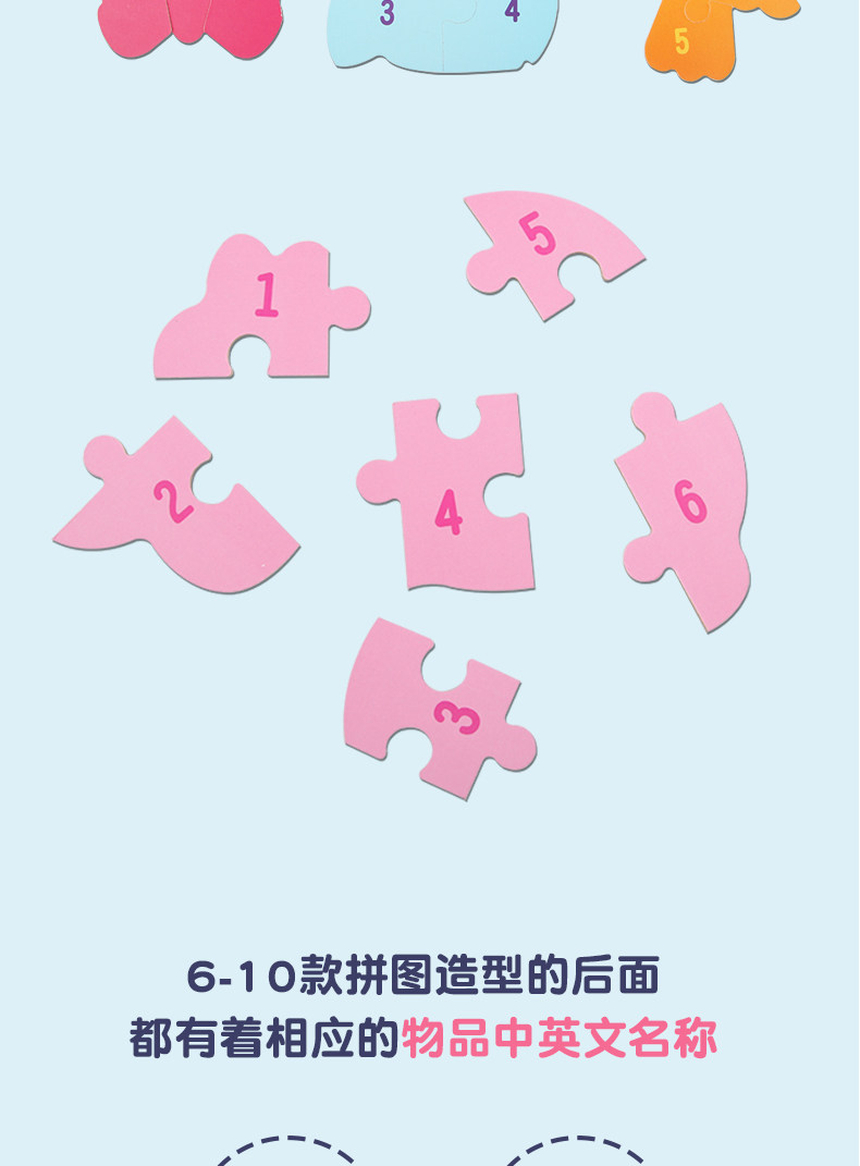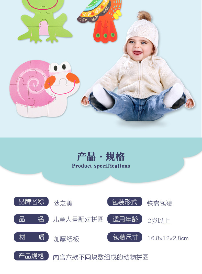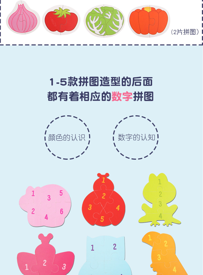 【多款可选】采用环保加厚进口纸板,做工精细,圆角处理贴心设计,手感细腻且光滑无毛刺,每款拼图背后对应的颜色,数字或者英文,方便宝宝区分,同时提高宝宝的认知!