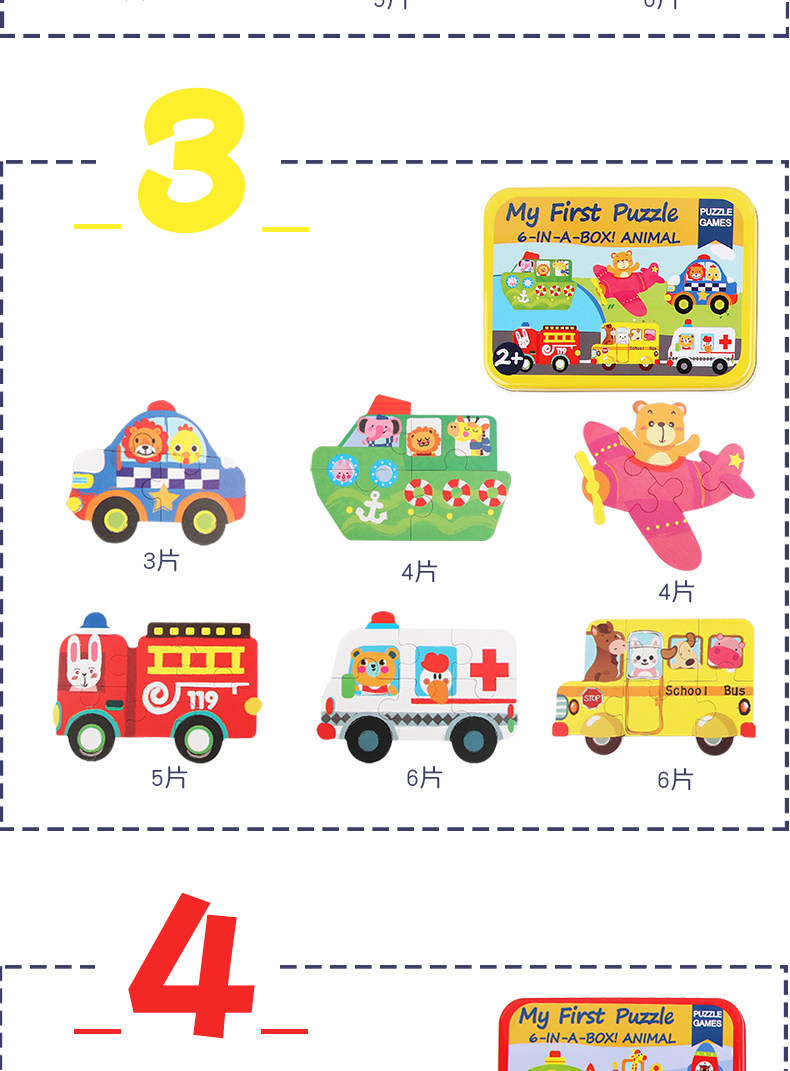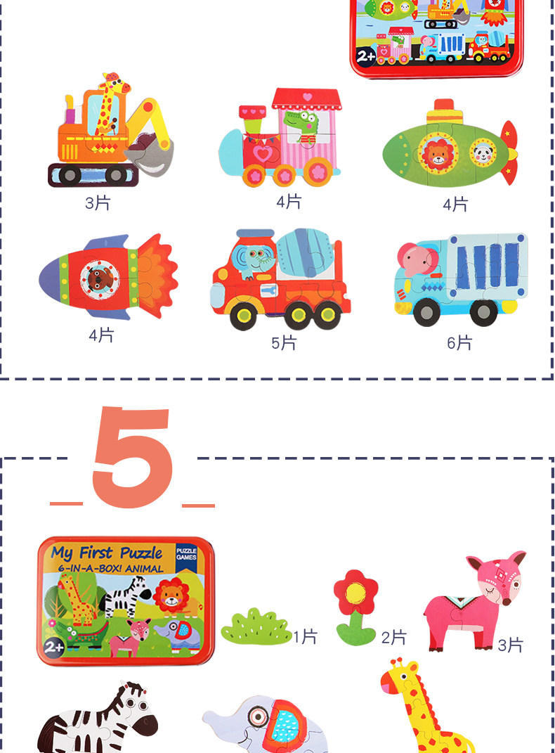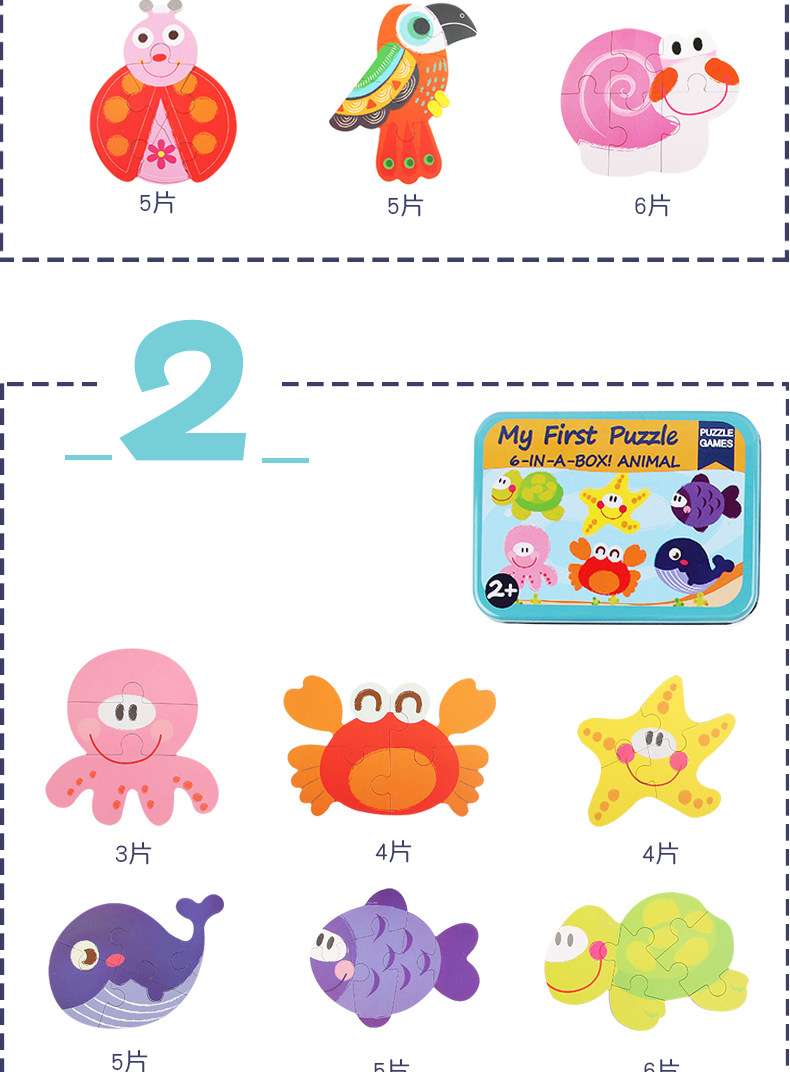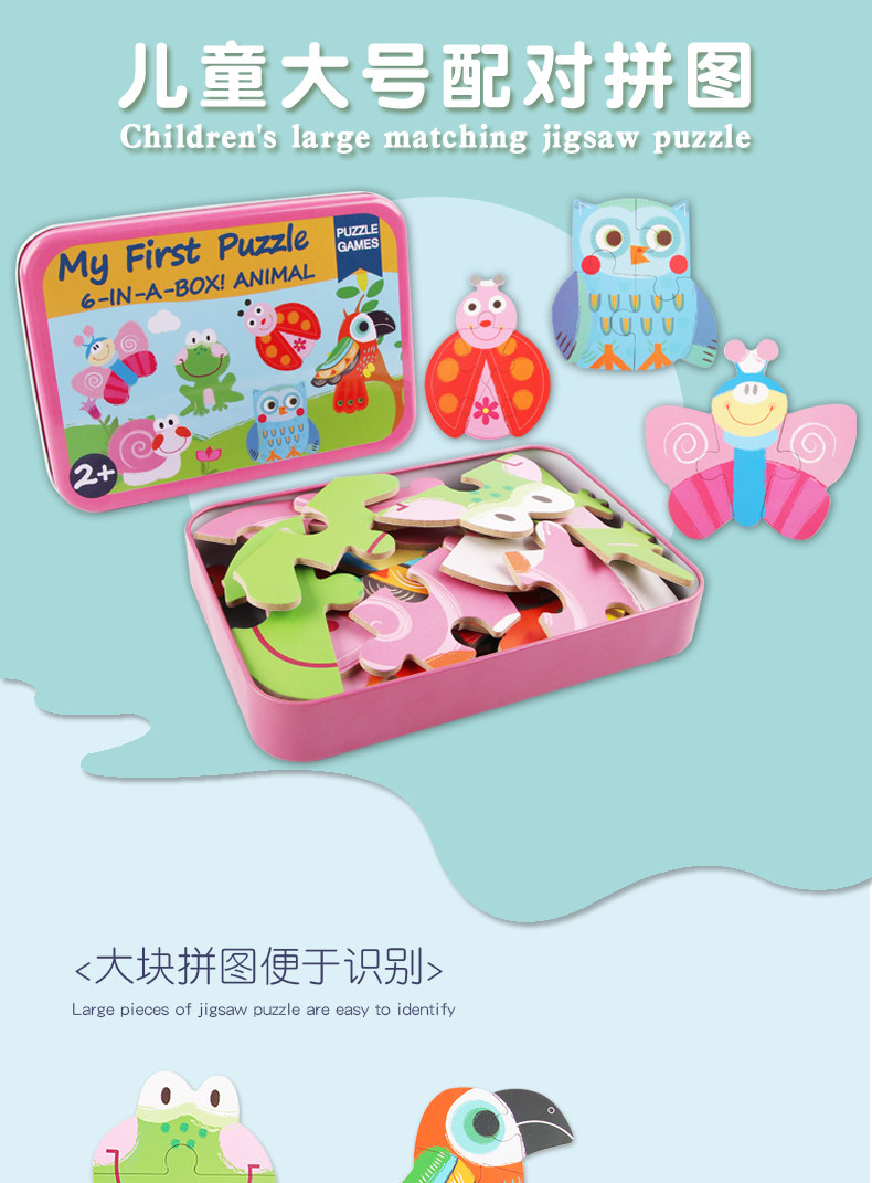 【铁盒收纳】儿童纸质宝宝幼儿大块拼图
