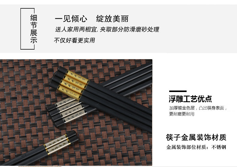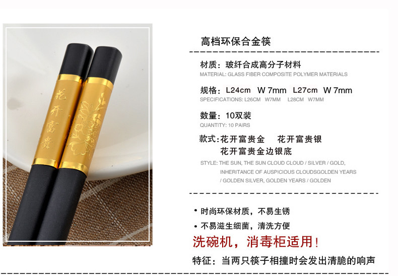 华韵滕王阁合金筷子家庭套装10双
