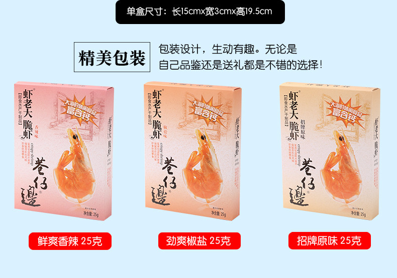 第二件半价,高钙,高蛋白!每个都是独立包装,安全卫生,酥酥的,头尾什么都能吃,不扎嘴,有嚼劲、有味道~孕期当作小零嘴还补钙!