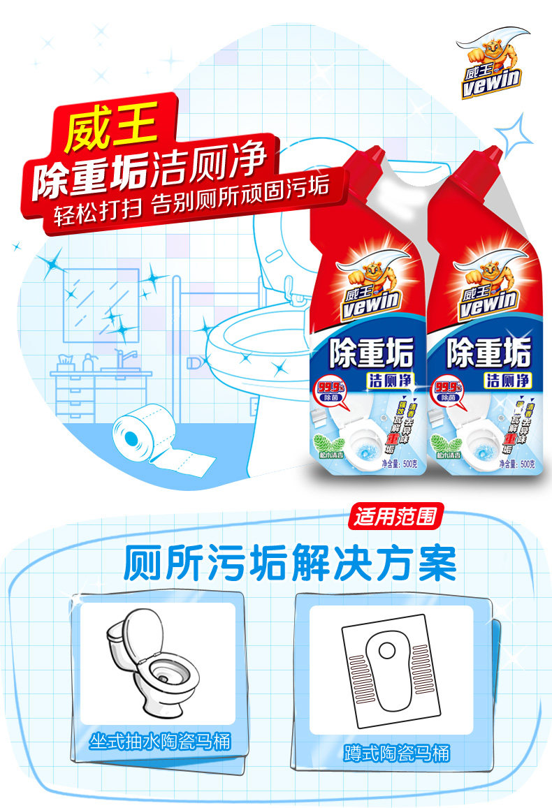 【立白威王】超值组合500G*3瓶装,强效除污,除重垢洁厕灵,强力厕所马桶清洁,持久挂壁,有喷头,不脏手,强效洁厕清香型,,超值装,速度囤!