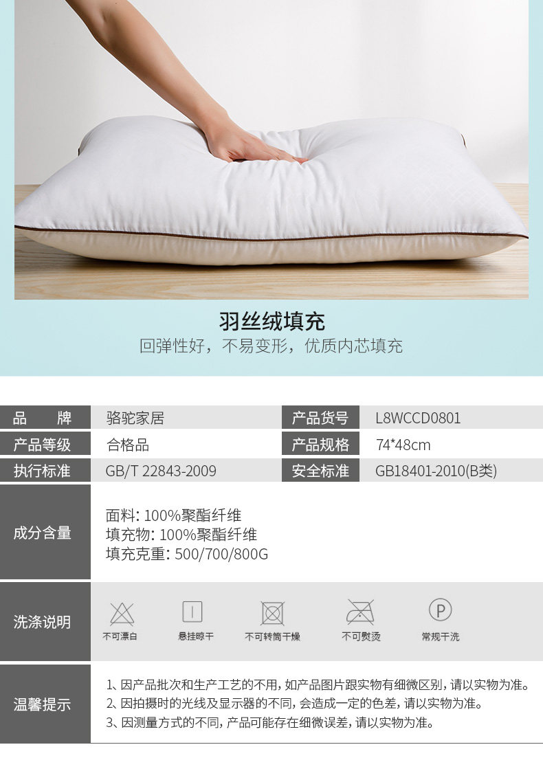 星级酒店专供骆驼枕头,可水洗的枕芯,三种高度可选,蓬松羽绒毛,炒鸡柔软有弹性的款,回弹性很好,只为给你舒适睡眠!【赠运费险】