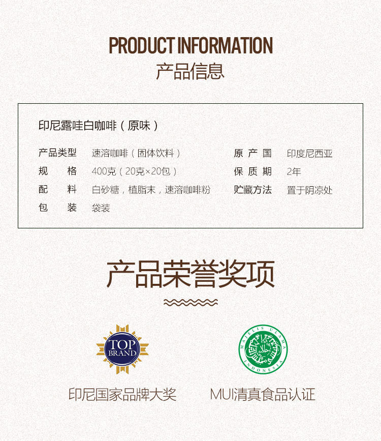 印尼露哇白咖啡原味三合一猫屎咖啡400g
