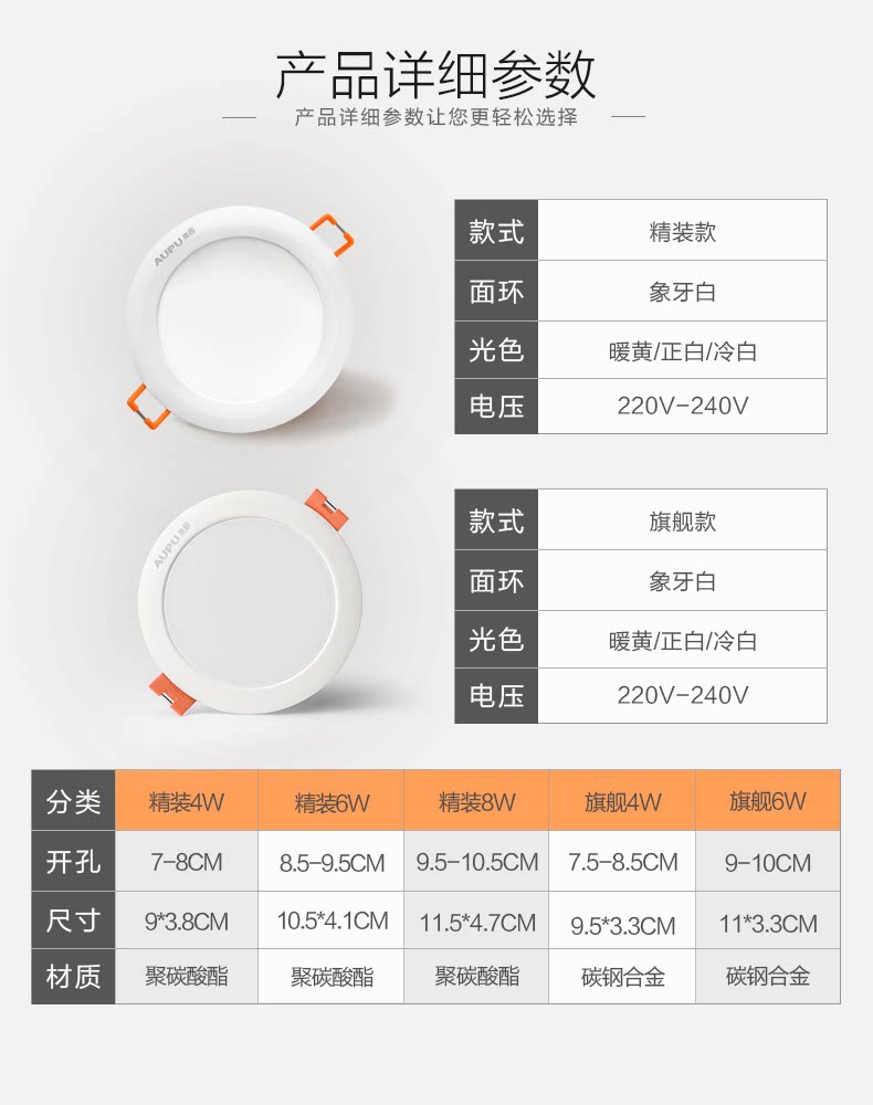 奥普led筒灯,8公分4w超薄桶灯,LED灯珠,光线柔和不伤眼,无频闪,光源稳定,无可视频闪,点亮生活,守护健康,简约设计,百搭风格。【赠运费险】